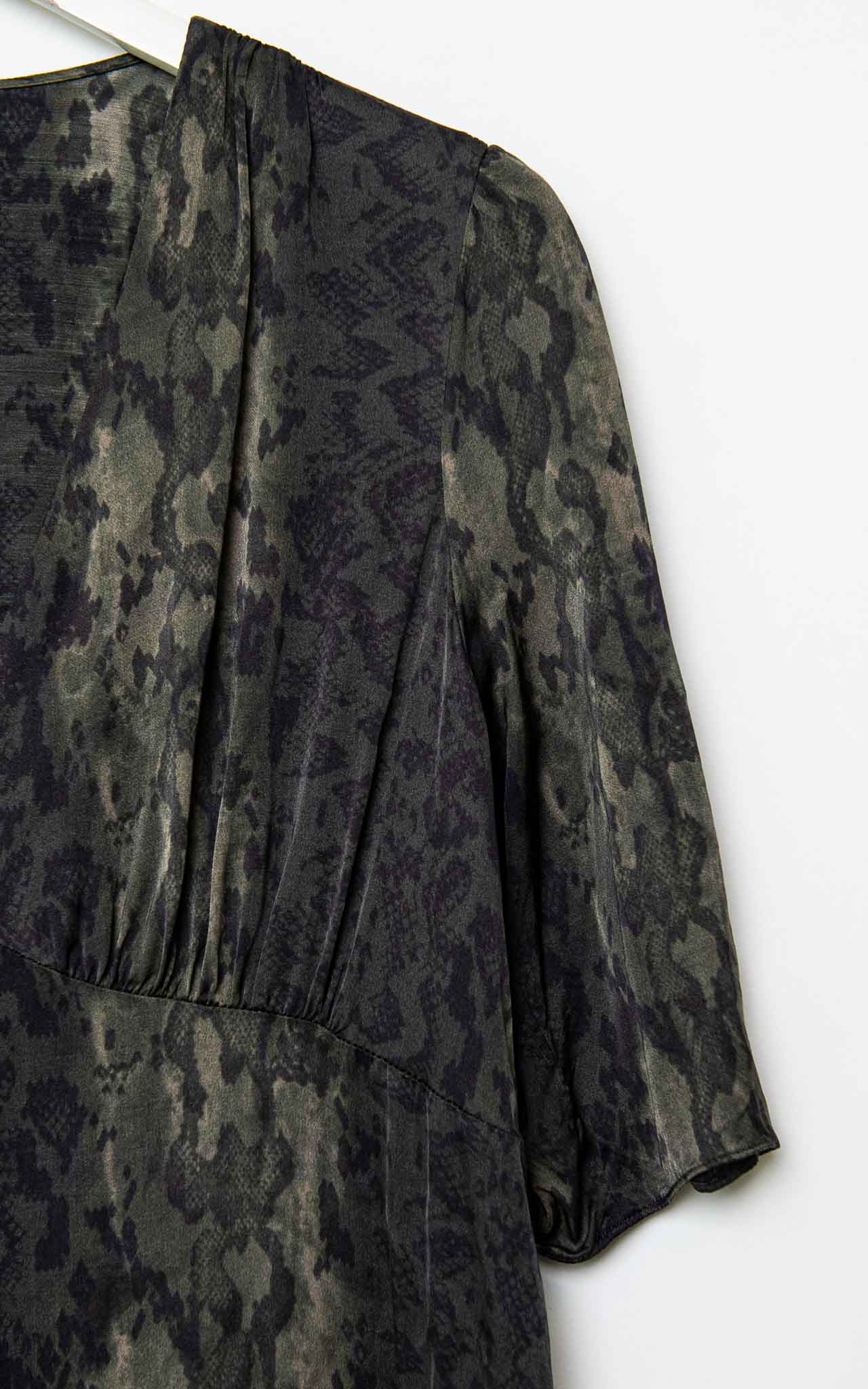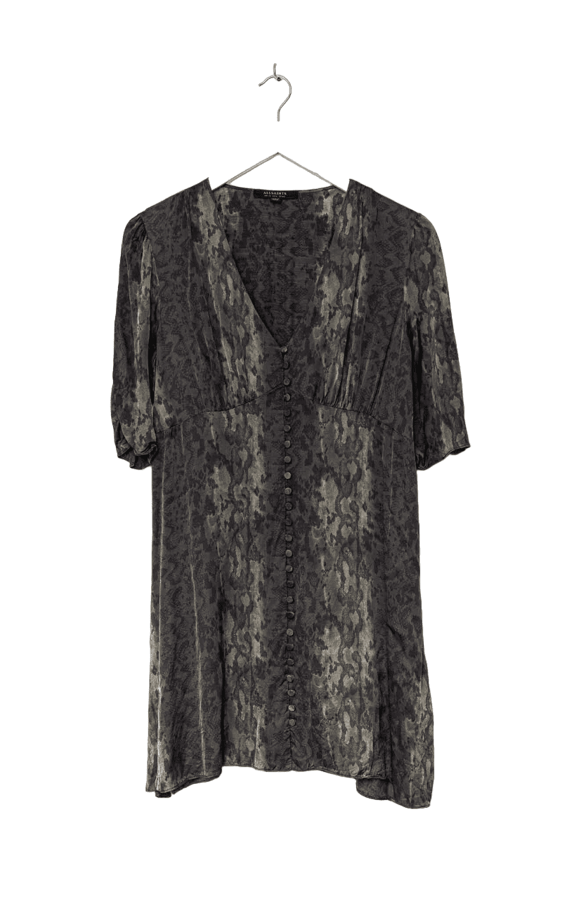 Wunderschönes Kleid mit langer Knopfleiste von Allsaints in schönen Olivtönen.