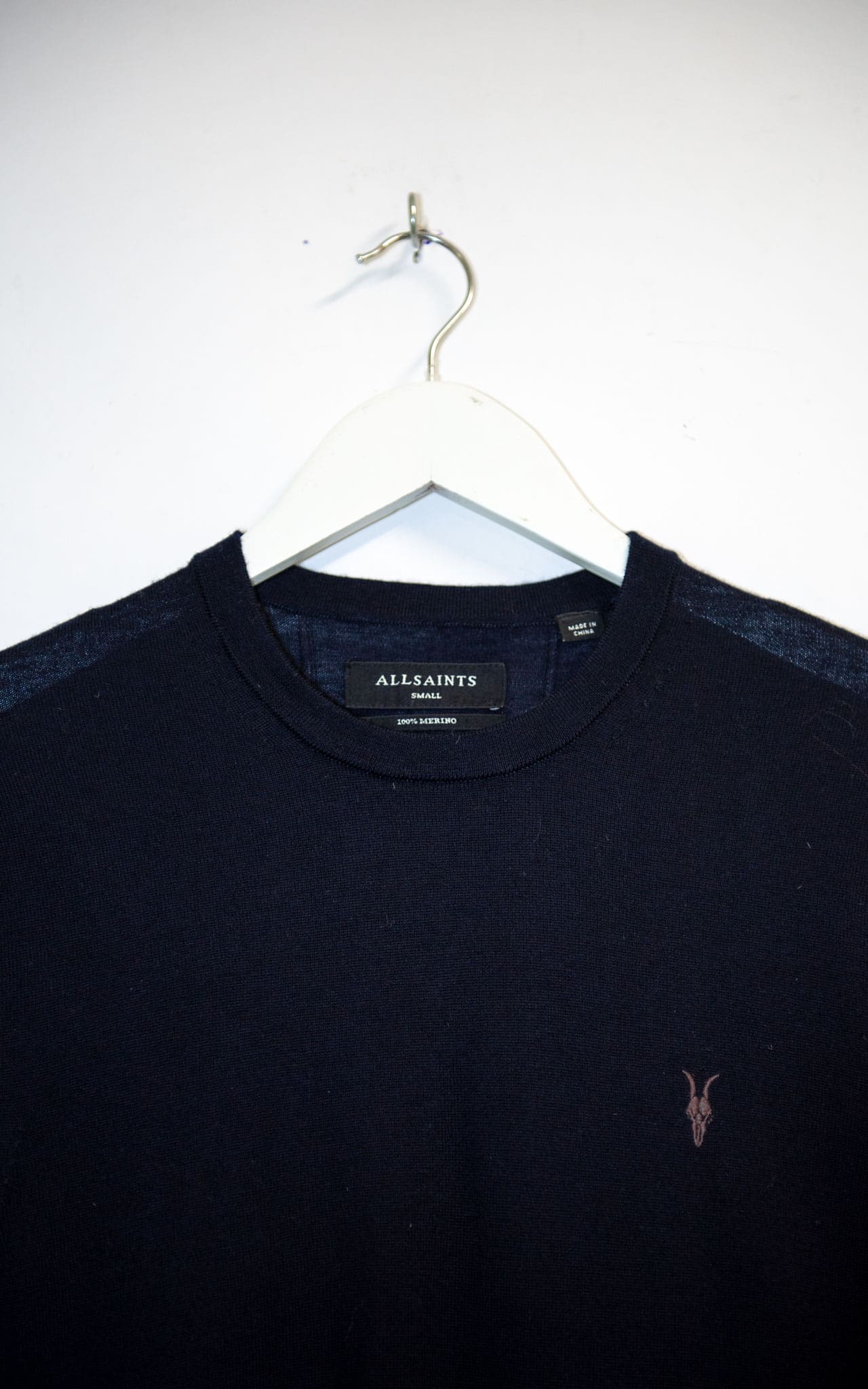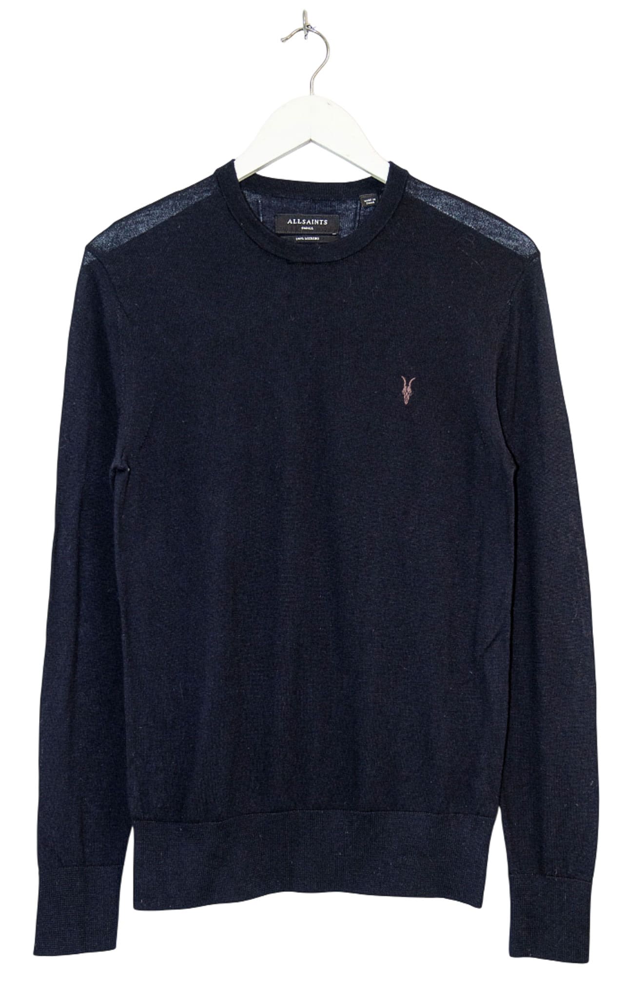 Der All Saints Pullover aus Wolle in Dunkelblau besticht durch seine hochwertige Verarbeitung und zeitlose Eleganz. Das feine Merinowoll-Material sorgt für ein angenehm weiches Tragegefühl und optimale Wärmeisolierung. Der klassische Schnitt macht ihn vielseitig kombinierbar – perfekt für lässige und elegante Looks.