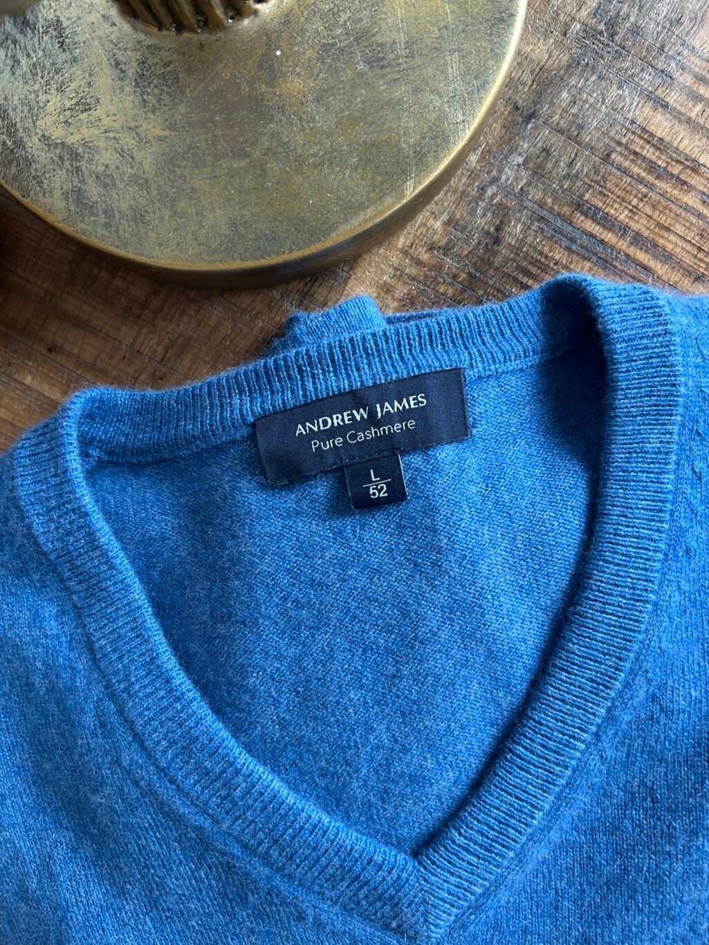 Schlichter, schöner V-Neck Pullover in Blau von Andrew James.