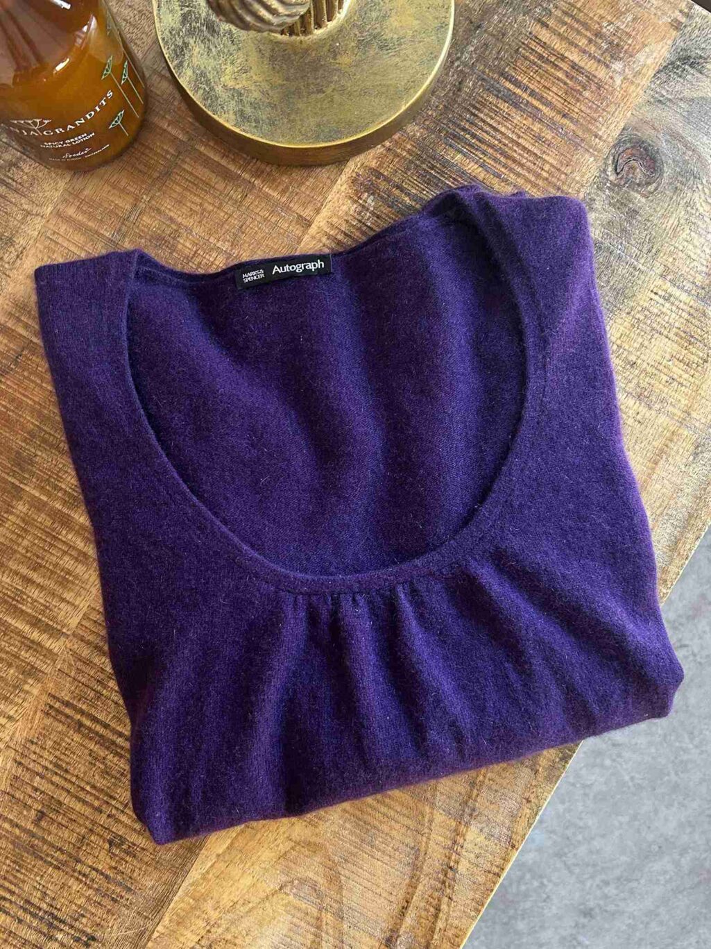 Dunkler schöner Cashmere Pullover von Autograph in tiefem Violett mit rundem Ausschnitt.