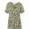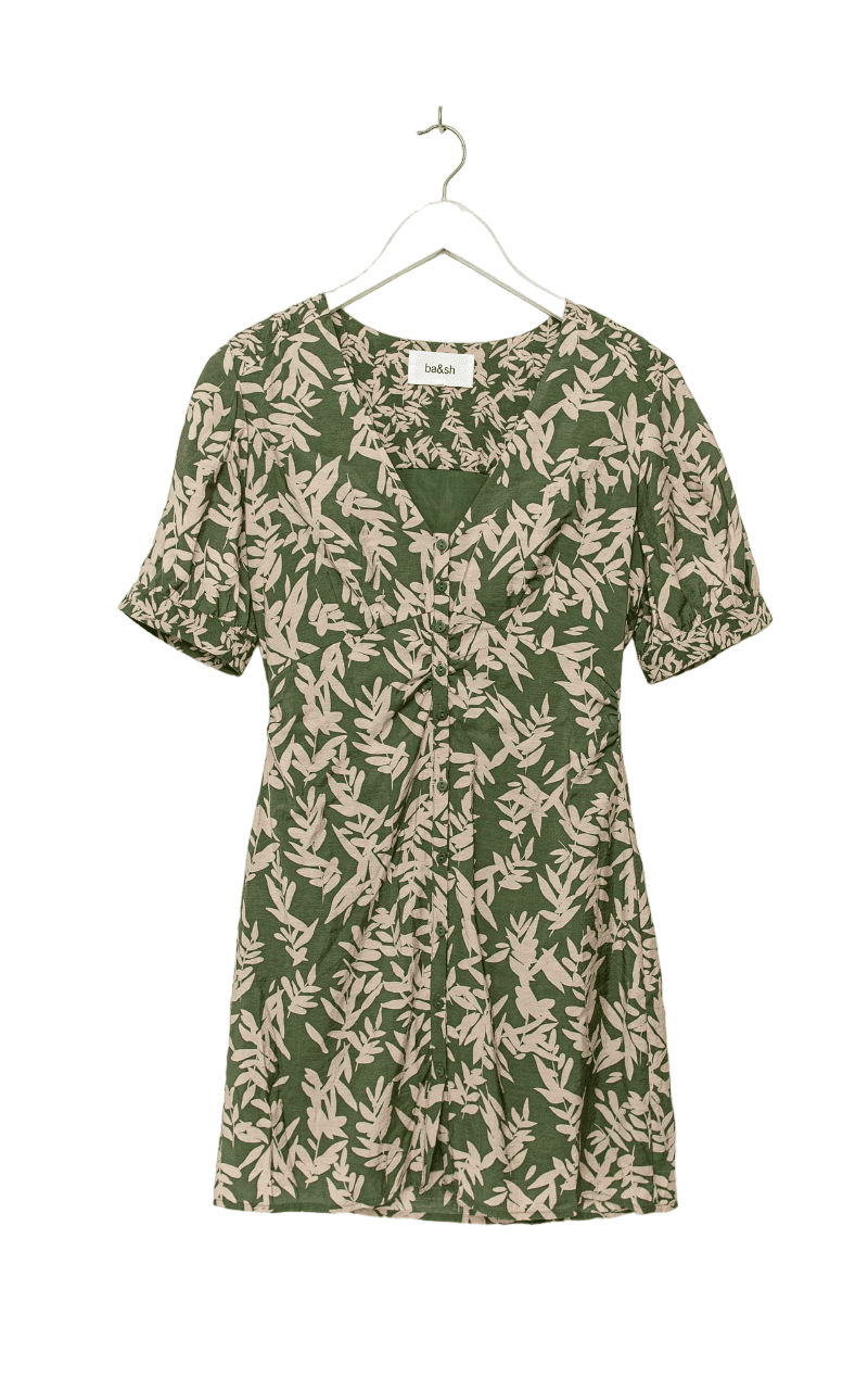 Das Kleid TAIS von Ba&sh ist frisch und feminin zugleich. Dieses kurze Kleid zeichnet sich durch seinen sehr körpernahen Schnitt aus. Der V-Ausschnitt wird durch eine Knopfleiste verlängert. Die kurzen Ärmel haben zwei Falten, die Volumen schaffen und einen Ballonärmel-Effekt erzeugen. Das Kleid besteht aus einem fließenden Material mit einem Pflanzendruck, der sonnige Tage versprüht. Der Ausschnitt unter der Brust ist auf beiden Seiten der Knopfleiste mit Raffungen verziert. Ein äußerst verführerisches Kleid. Dieses Modell enthält Viskose aus nachhaltig bewirtschafteten Wäldern.