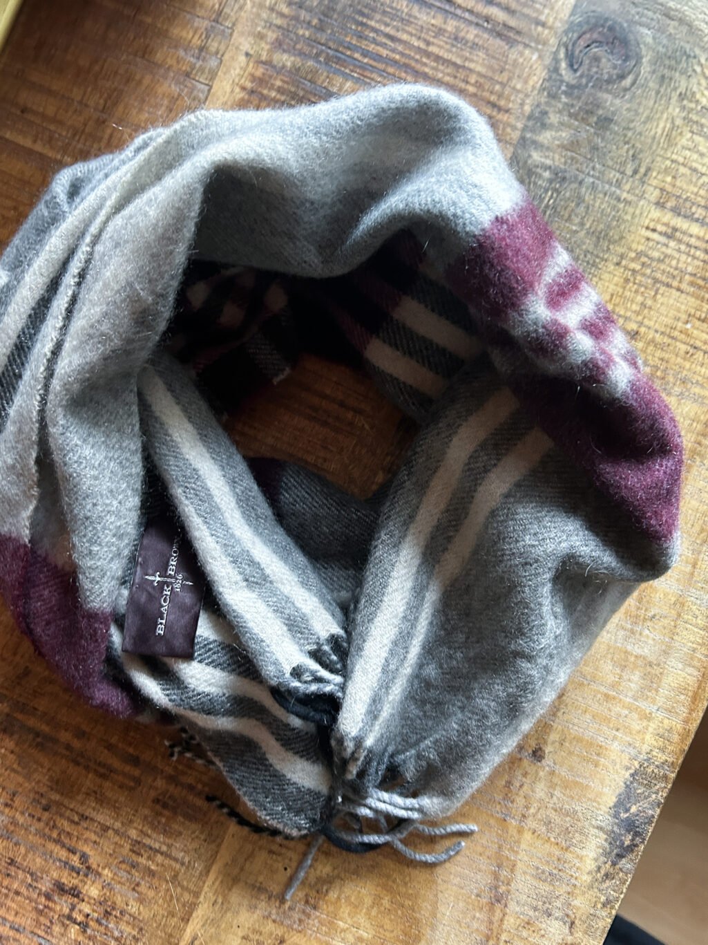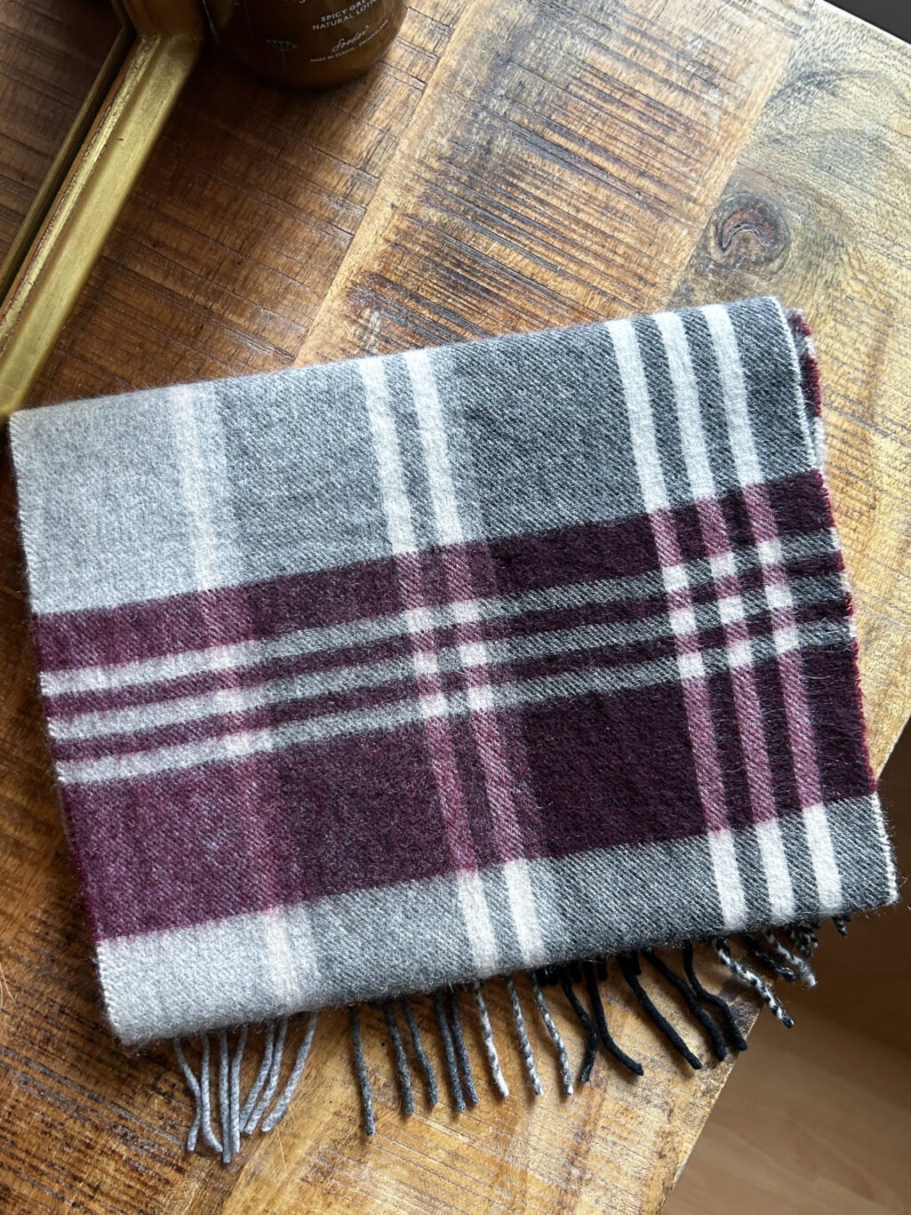 100 % Cashmere-Schal von Black Brown mit klassischem Karomuster in Grau, Offwhite und tiefem Violett. Weicher, dichter Cashmere mit ruhiger Oberfläche und sauberem Fall. Leicht wärmend, angenehm auf der Haut und vielseitig tragbar. Ein zurückhaltendes Accessoire mit Substanz und langer Lebensdauer.