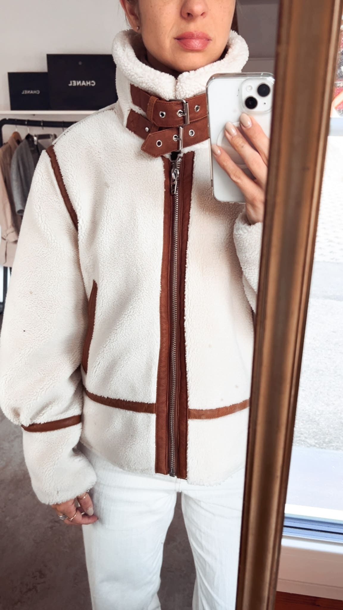 Die Jacke ist eher klein geschnitten, passt zu M