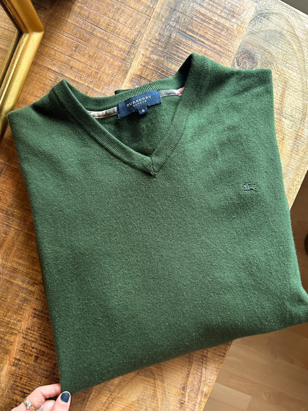 100 % Cashmere-Pullover von Burberry für Herren in Waldgrün mit klassischem V-Ausschnitt. Klare Linien, zurückhaltendes Branding und ein zeitloser Schnitt. Weich im Griff, angenehm leicht und hochwertig verarbeitet. Ein langlebiger Cashmere-Pullover für Alltag und gepflegte Looks.