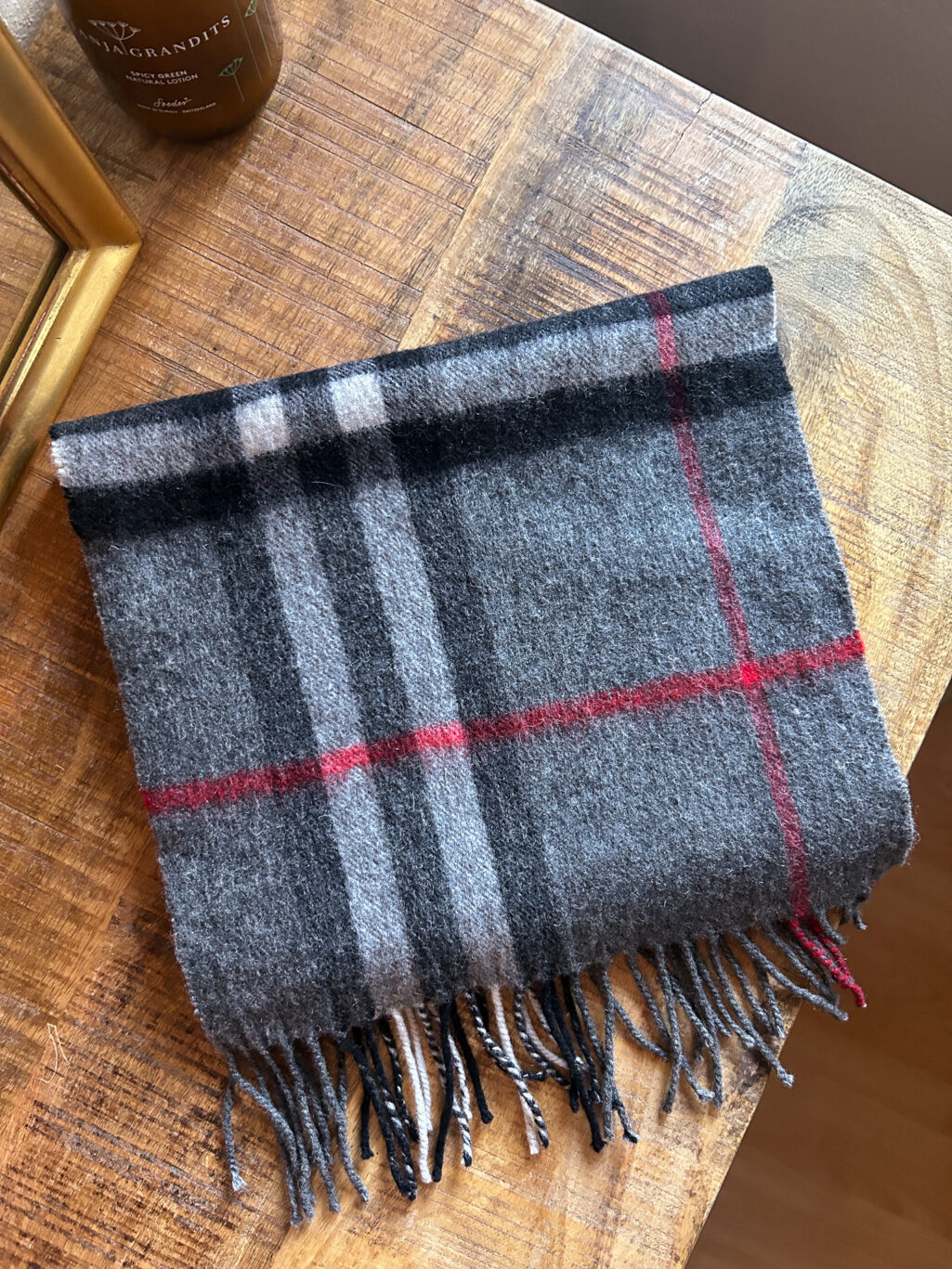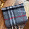100 % Cashmere-Schal von Burberry in eleganten Grau- und Schwarztönen, akzentuiert durch ein wunderschönes rotes Detail. Aussergewöhnliche Qualität, weich, luxuriös und vielseitig kombinierbar. Hochwertig verarbeitet und angenehm leicht – ein stilvolles Accessoire.
