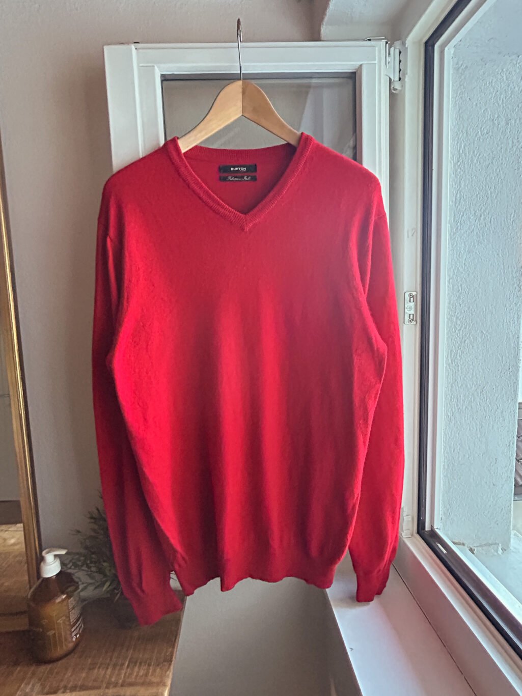 Roter Cashmere-Pullover von Burton of London aus 100% Cashmere. Das klassische Design und die klare Linienführung verleihen dem Pullover eine zeitlose und elegante Ausstrahlung. Der hochwertige Cashmere sorgt für ein besonders weiches Tragegefühl und hohen Komfort.
