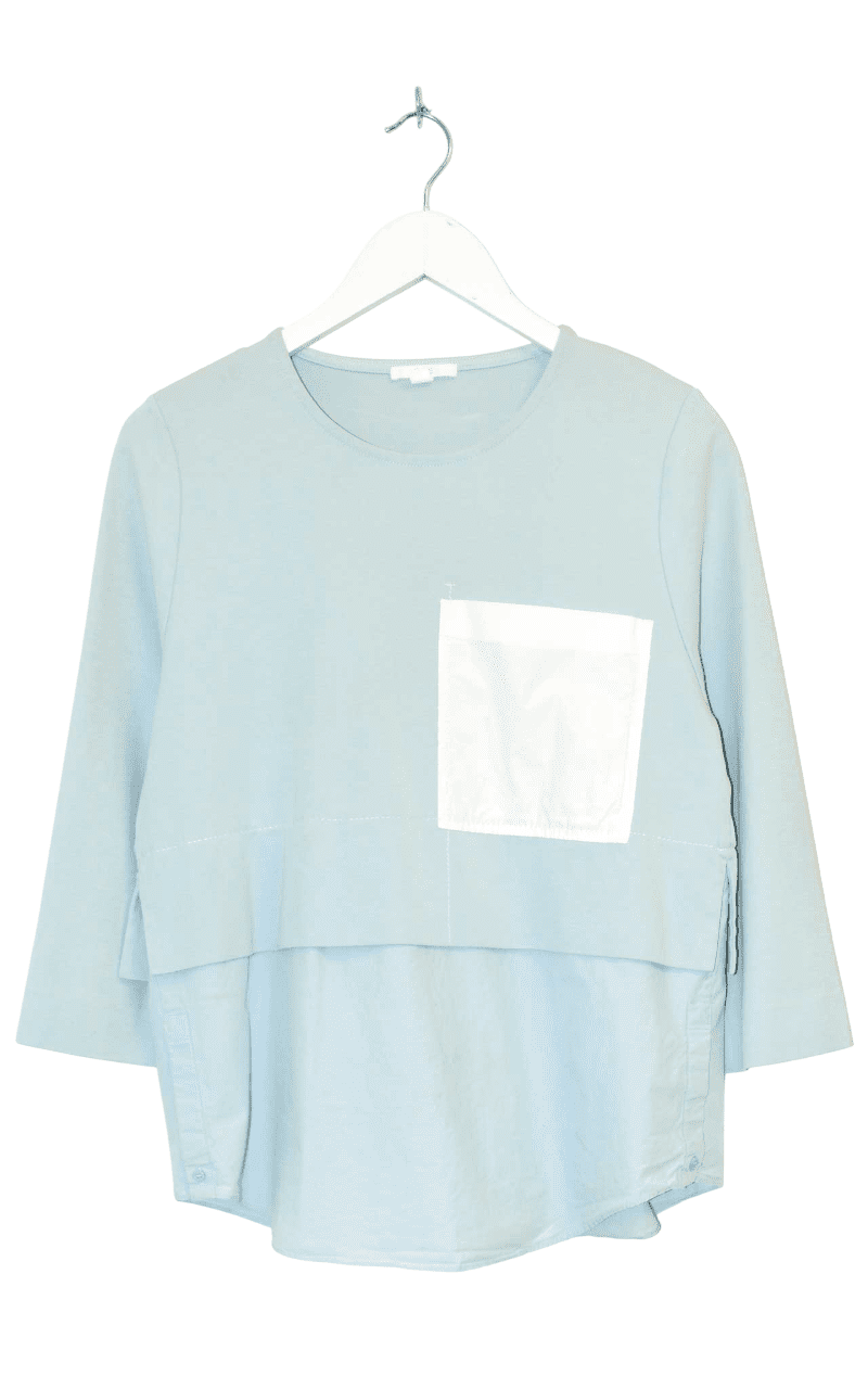 Entdecke dieses stilvolle COS Damen-Top in Hellblau mit modernem Lagen-Look – perfekt für einen eleganten, aber lässigen Style. Dieses Secondhand-Designerteil überzeugt mit hochwertigen Materialien und einer einzigartigen weissen Brusttasche. Jetzt nachhaltig shoppen und hochwertige COS Mode Secondhand auf Monkky.ch finden!