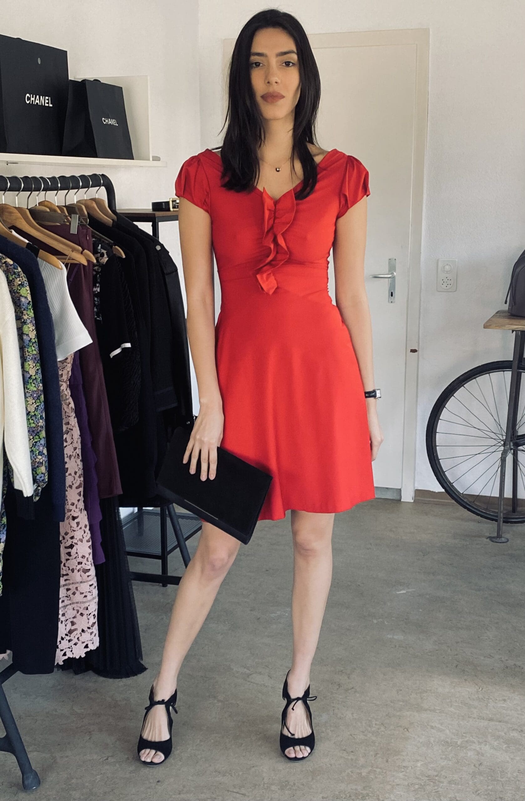 Das Secondhand Kleid von Diane von Fürstenberg in Rot mit Rüschen verkörpert zeitlose Eleganz. Mit seinem lebendigen Rot und den verspielten Rüschen verleiht dieses Kleid Deinem Look eine besondere Note. Perfekt für besondere Anlässe – dieses Kleid ist ein unverzichtbares Stück für jede stilbewusste Frau.
