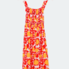 Dieses Maxikleid von Elise ist leicht und sommerlich. Es ist ärmellos und hat ein frisches Blumenmuster in Rot und Gelb. Der Schnitt ist locker und sorgt für ein angenehmes Tragegefühl, perfekt für warme Tage oder den Urlaub.