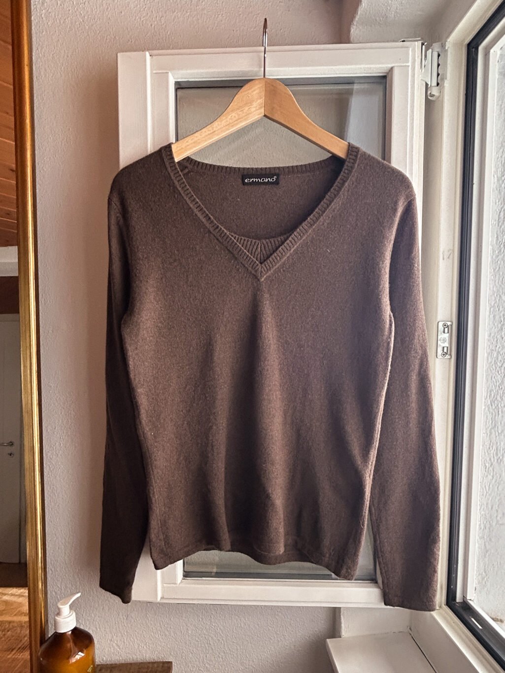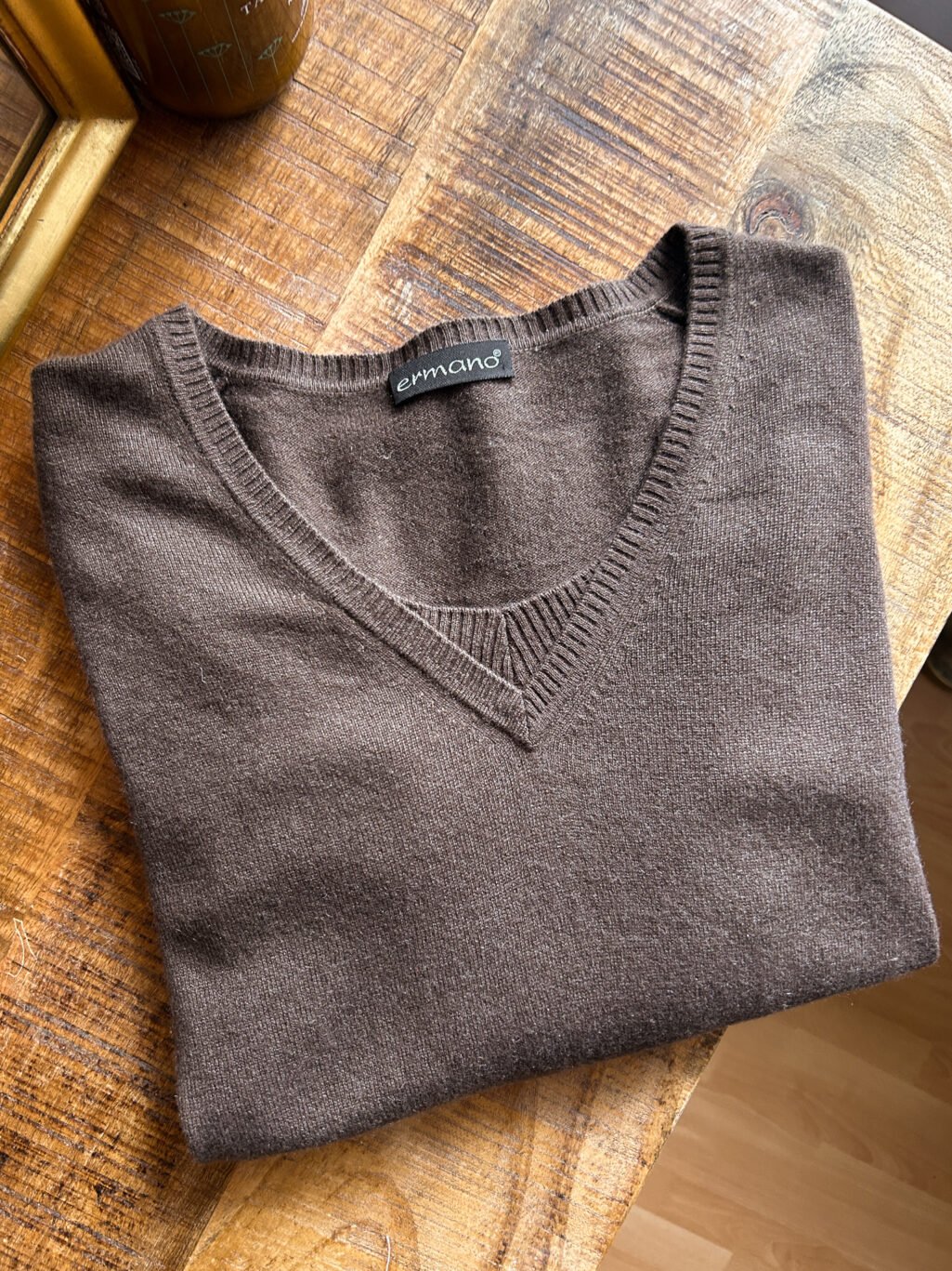 Cashmere-Pullover von Ermano aus 100 % feinem Cashmere in warmem Kaffeebraun. Der klare V-Ausschnitt verleiht dem Design eine zeitlose Eleganz und betont die reduzierte, minimalistische Silhouette.