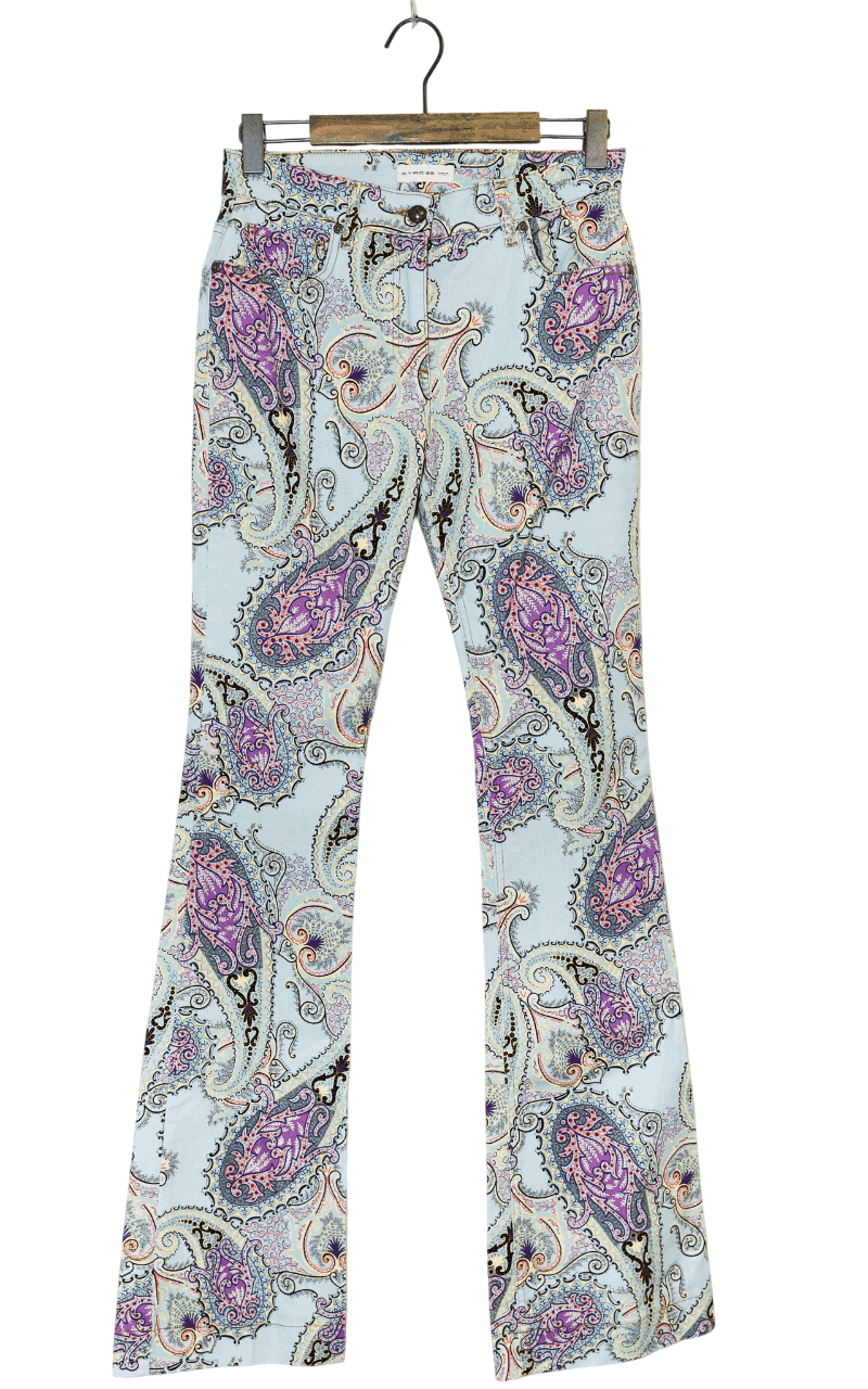 Super coole Secondhand Designer Hose von Etro mit Paisley Muster und leichtem Schlag: