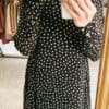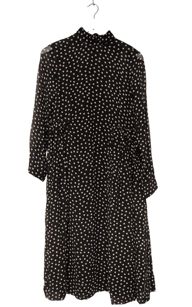 Dieses schwarze Polka-Dot Kleid von GANNI mit beigen Punkten strahlt verspielte Eleganz aus und ist aus fließender Viskose gefertigt. Neu mit Etikett, kombiniert es femininen Charme mit einem modernen, lässigen Schnitt. Ein stilvolles Statement-Piece, das sich perfekt für verschiedene Anlässe eignet.