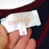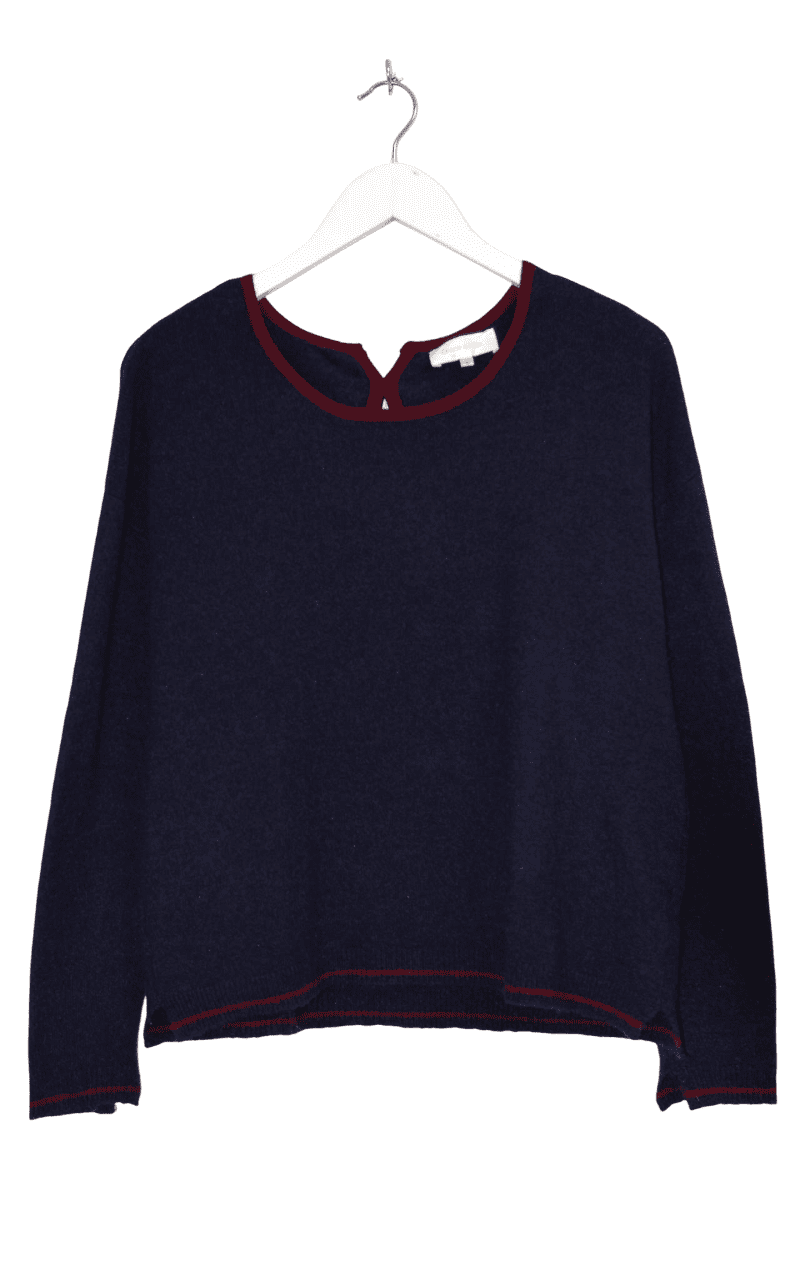 Der Grace & Mila Pullover in Navy mit einer Schleife am Rücken verleiht dem klassischen Design eine verspielte und femininen Note. Der weiche Stoff sorgt für angenehmen Tragekomfort, während die Schleife auf der Rückseite das gewisse Etwas hinzufügt. Perfekt für schlichte, aber dennoch stilvolle Outfits.