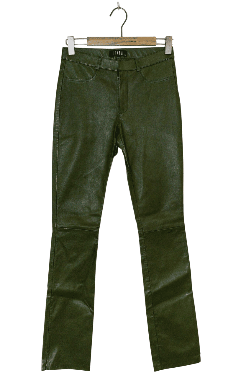 Diese olivgrüne Lederhose von Ibana ist das perfekte Piece für alle, die edgy Eleganz und nachhaltigen Stil kombinieren möchten. Gefertigt aus weichem Echtleder und mit leicht ausgestelltem Bein, verleiht sie jedem Look eine lässige Coolness. Als Teil unserer exklusiven Auswahl an kuratierter Secondhand-Mode ist diese Hose in hervorragendem Zustand erhältlich – für alle, die bewusst shoppen und auf hochwertige preloved Fashion setzen. Entdecke sie jetzt in unserem Onlineshop für nachhaltige Designermode.