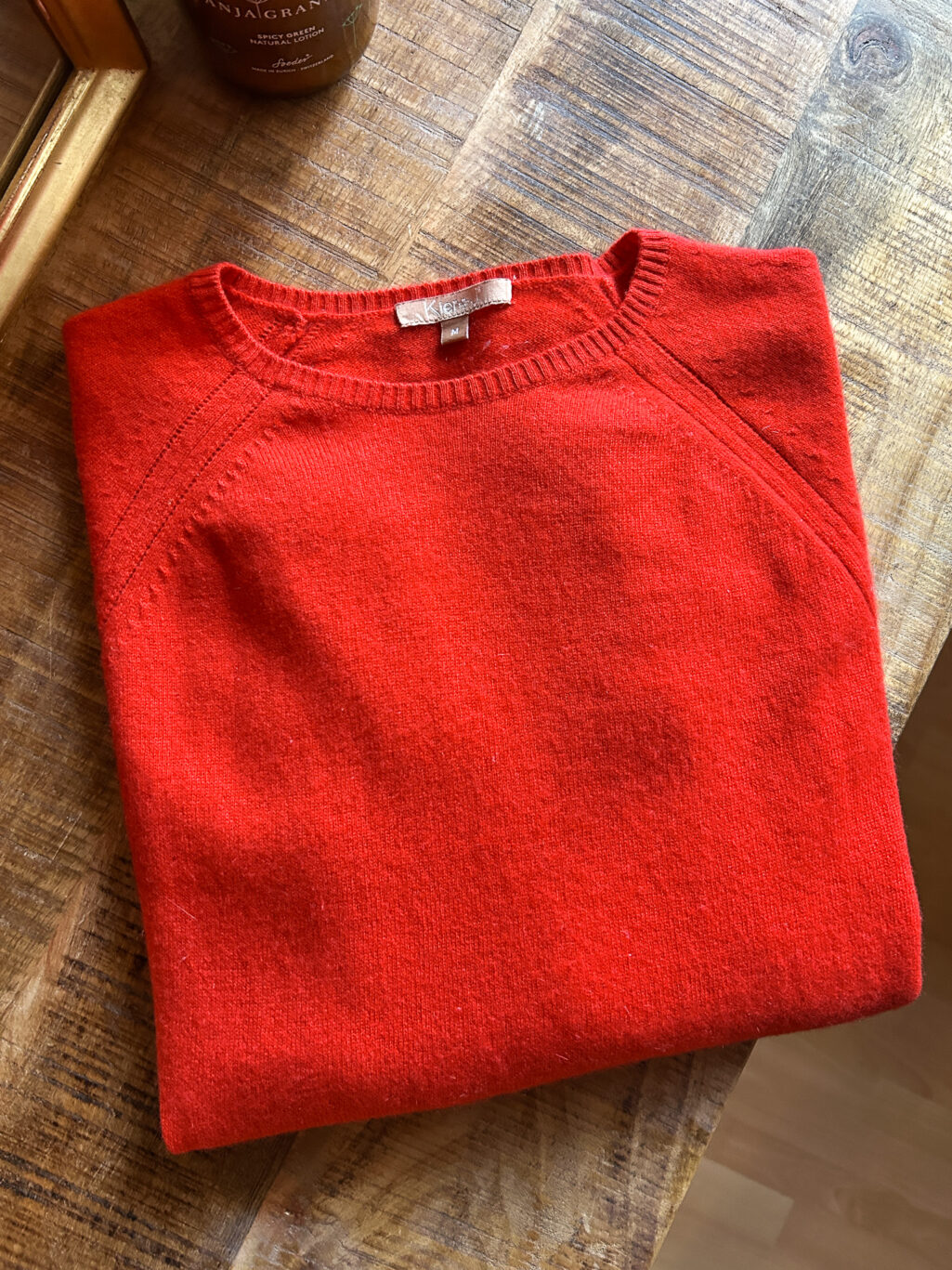Roter Cashmere-Pullover von Kier+J aus 100% Cashmere in Größe M. Das elegante und zugleich zeitlose Design verleiht dem Pullover eine moderne Ausstrahlung. Die hochwertige Cashmere-Qualität sorgt für eine besonders weiche Haptik und hohen Tragekomfort. Der Pullover befindet sich in ausgezeichnetem Zustand und eignet sich ideal für stilvolle Alltagslooks.