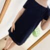 Hübsches dunkelblaues Kleid mit besticktem Muster und Unterkleid: