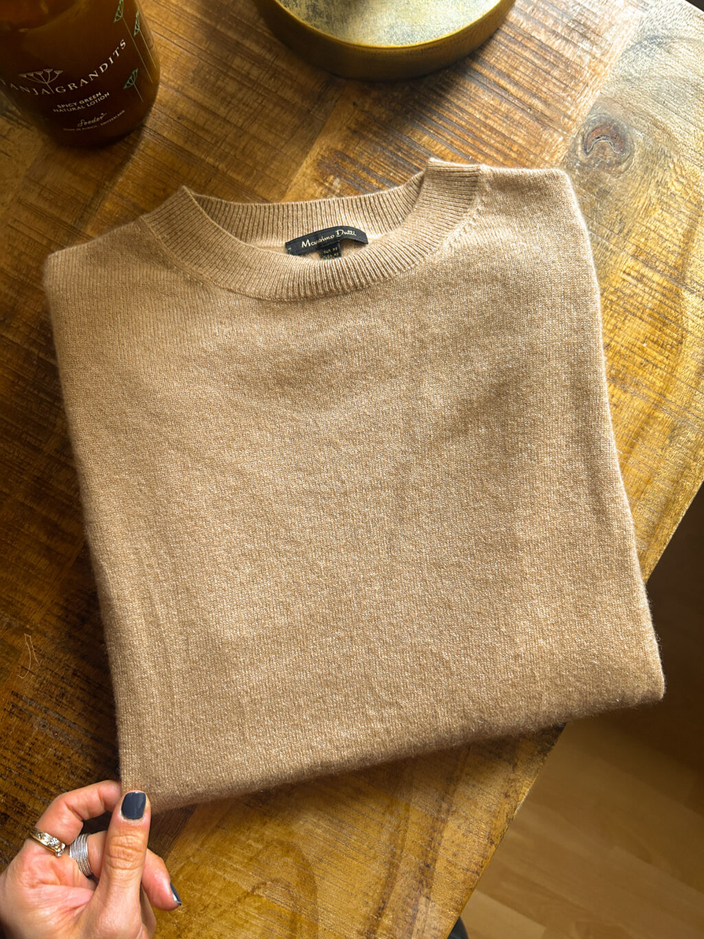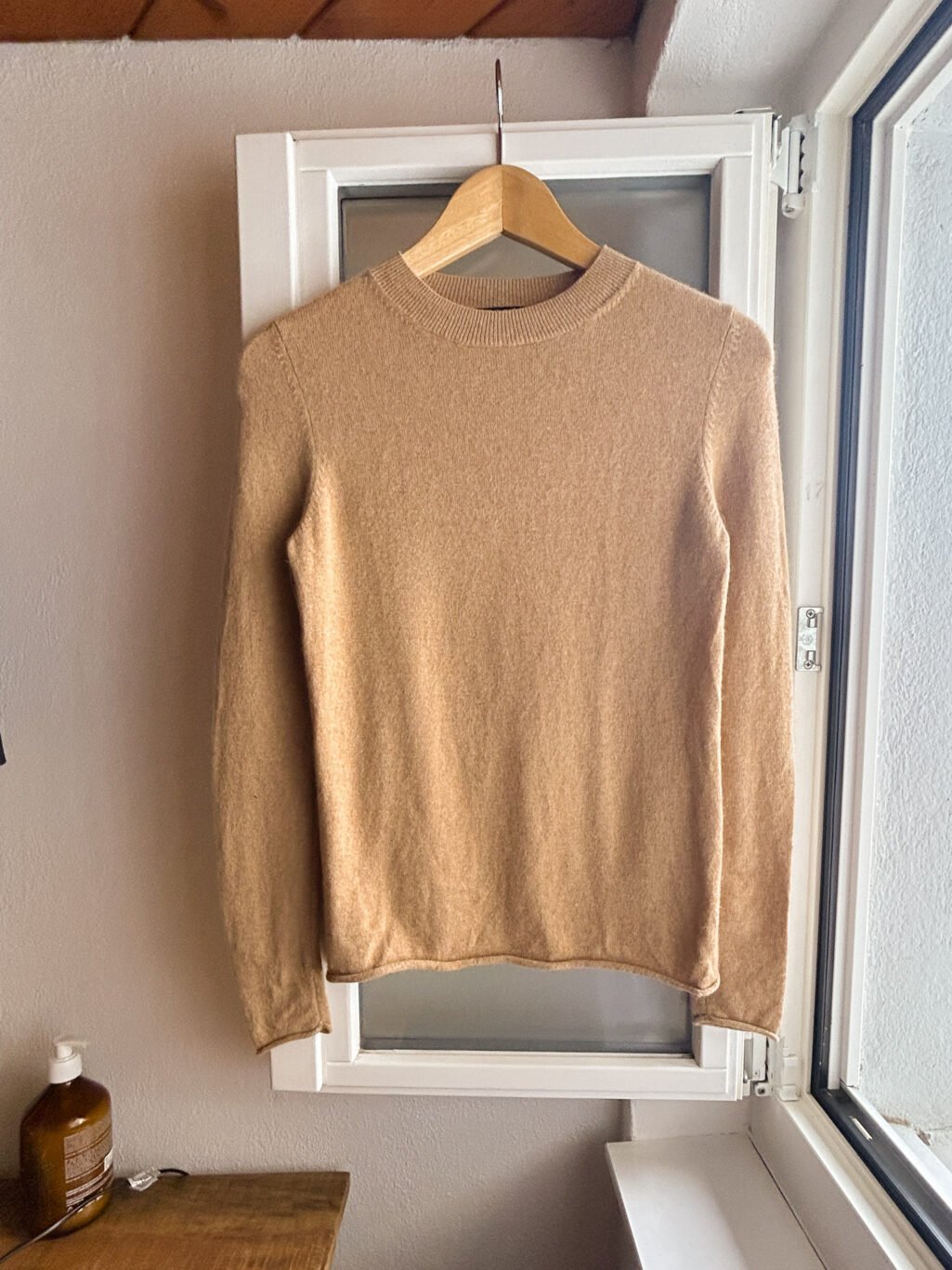 Cashmere-Pullover von Massimo Dutti in hellem Beigeton mit feinem Rundhalsausschnitt. Klar gestaltet, weich im Griff und angenehm leicht zu tragen. Ein zurückhaltendes Cashmere-Stück, das sich mühelos in eine zeitlose Garderobe einfügt und durch Materialqualität überzeugt – nicht durch Lautstärke.