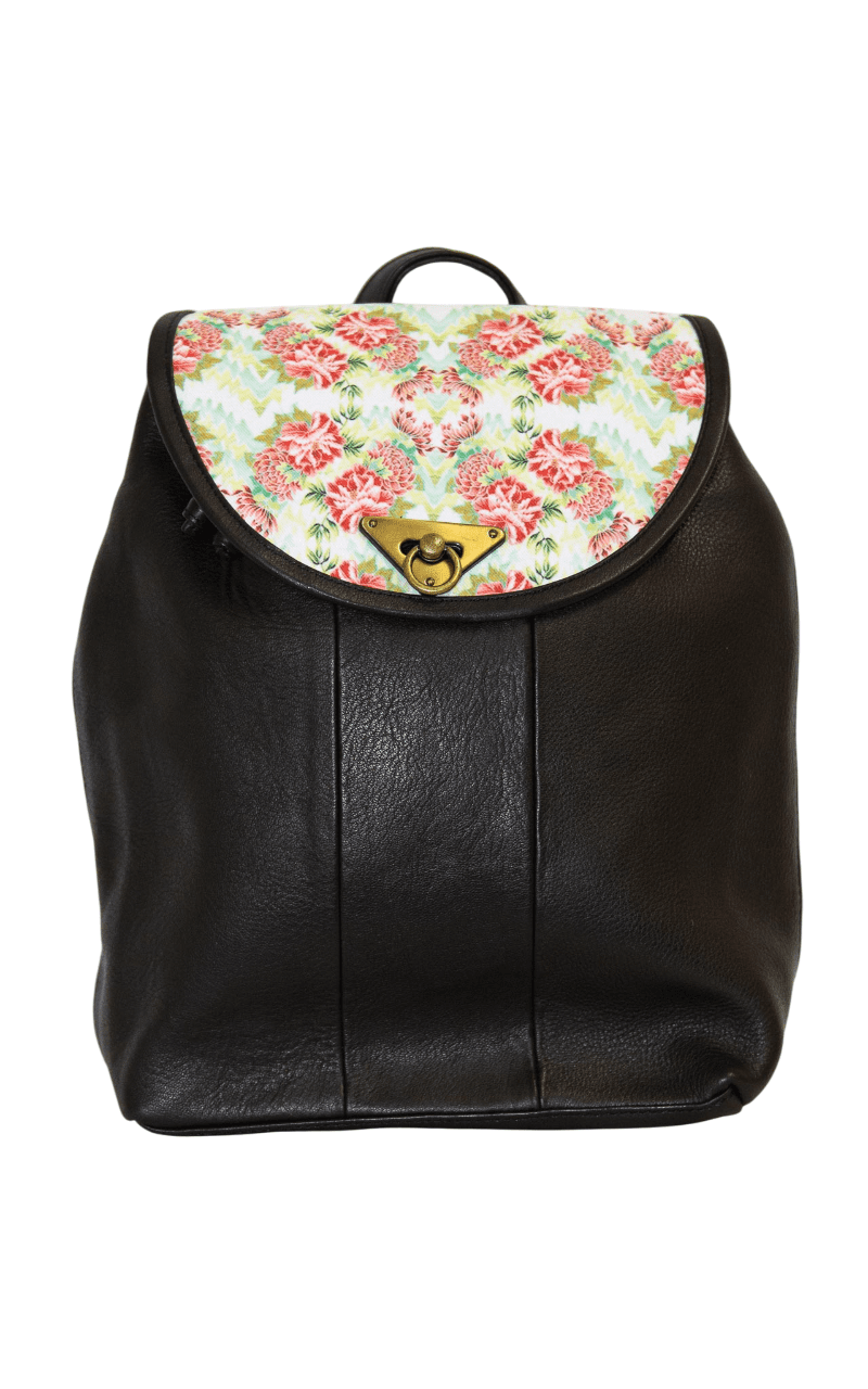 Der Mochil Rucksack aus Leder ist mit einem floralen Muster auf der Klappe verziert. Dieses stilvolle Accessoire bietet eine Kombination aus eleganter Optik und praktischer Funktionalität.