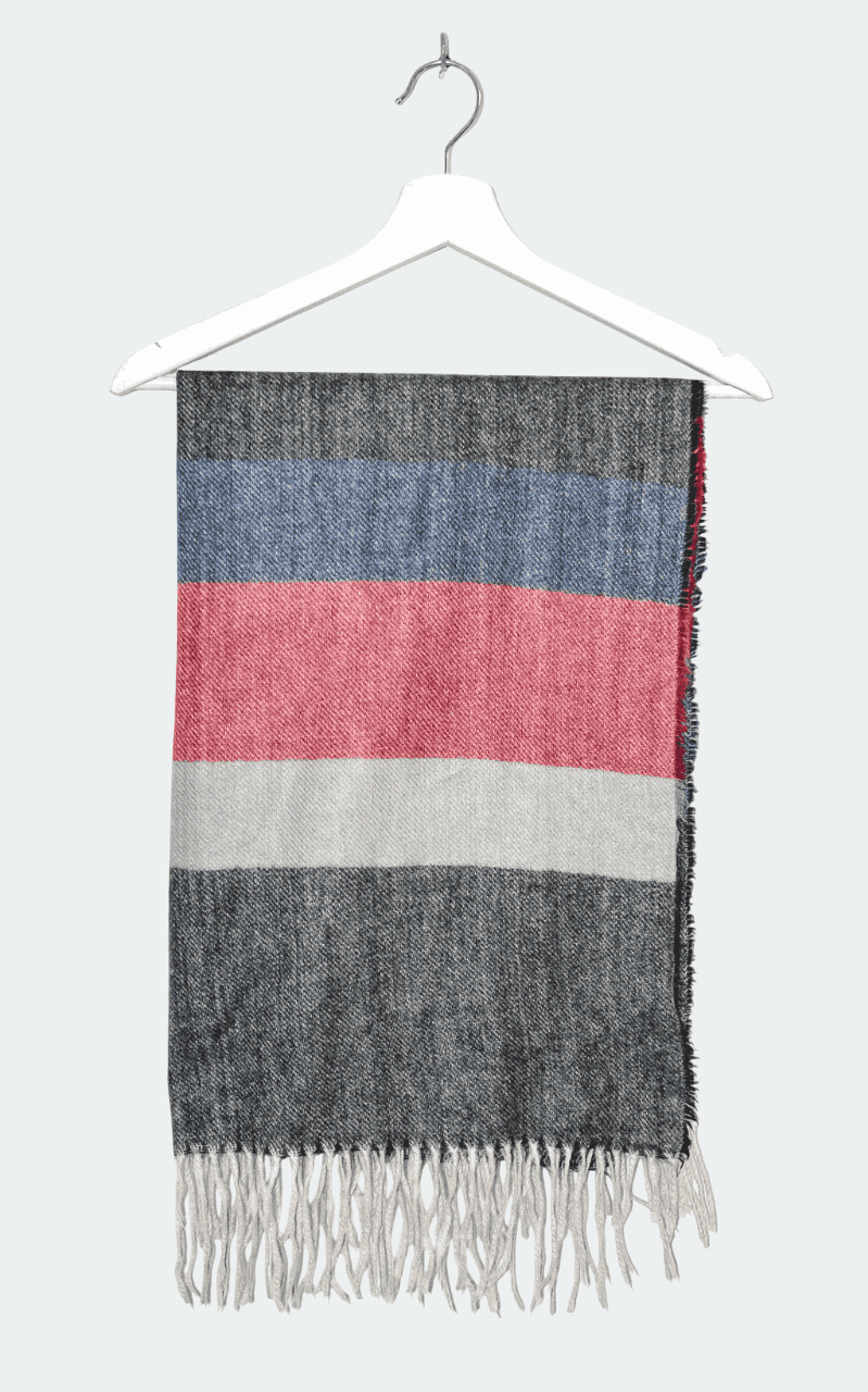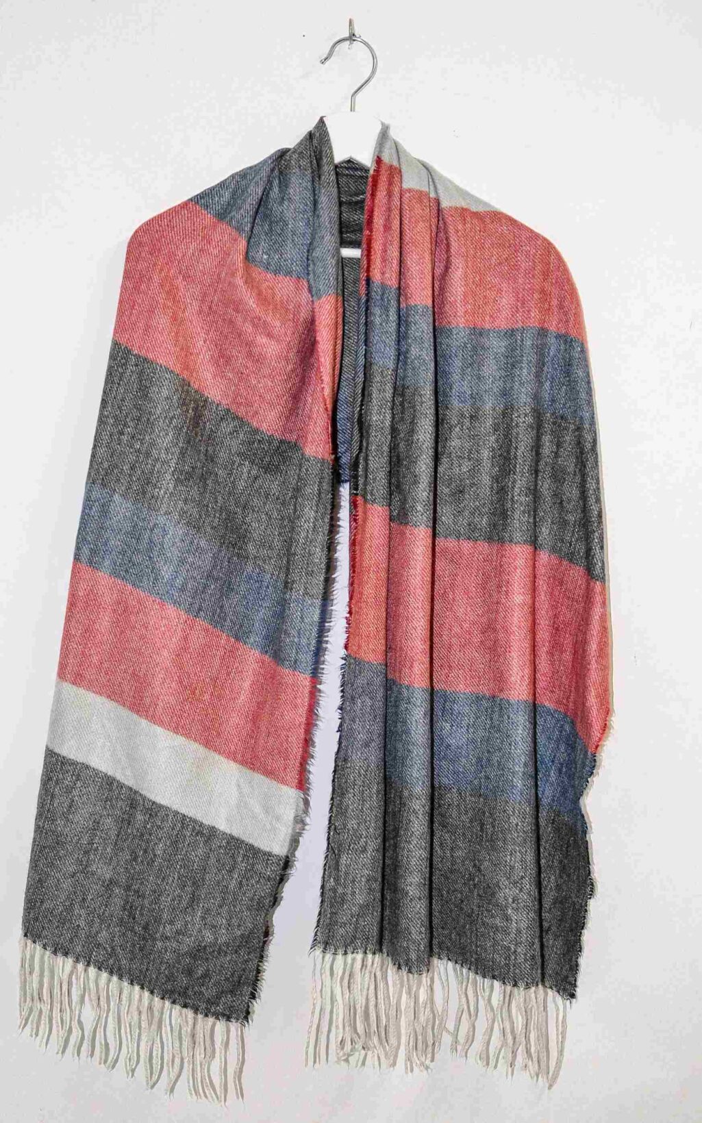 Grosser schöner Streifen-Schal von Monkky, zeitlose, vielseitig tragbare Farbe und wunderbar angenehm auf der Haut, ein Stück für jeden Tag, das sich elegant oder casual tragen lässt.