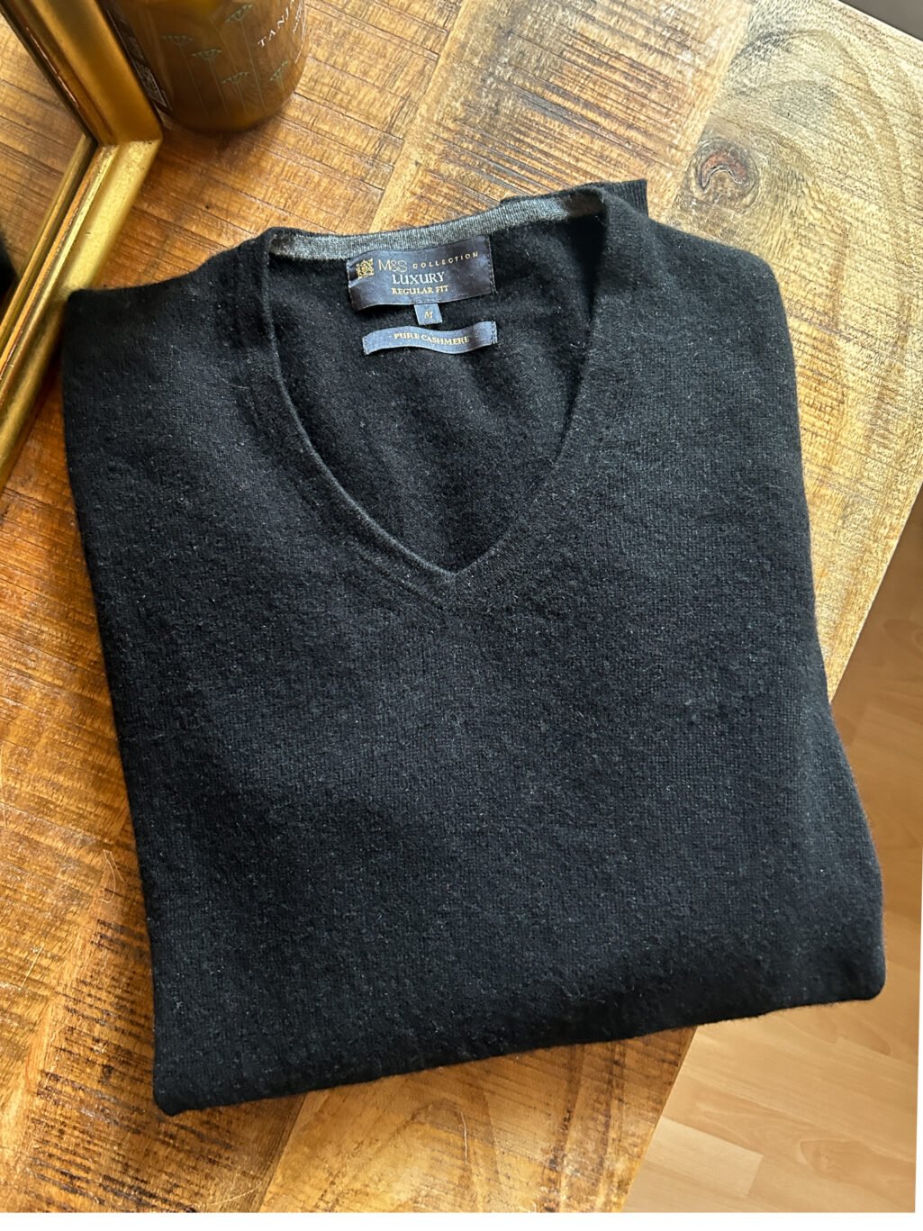 Schwarzer Regular Fit Cashmere-Pullover von M&S (Marks & Spencer) aus 100 % reinem Cashmere. Der klassisch-elegante Schnitt und die zeitlose Farbgebung verleihen dem Modell eine ruhige, souveräne Ausstrahlung mit feinem Stilbewusstsein. Besonders weich im Griff und angenehm auf der Haut.