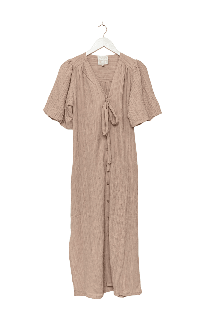 Schönes langes Kleid mit Knöpfen und Puffärmel von My Essential Wardrobe sehr gut erhalten.