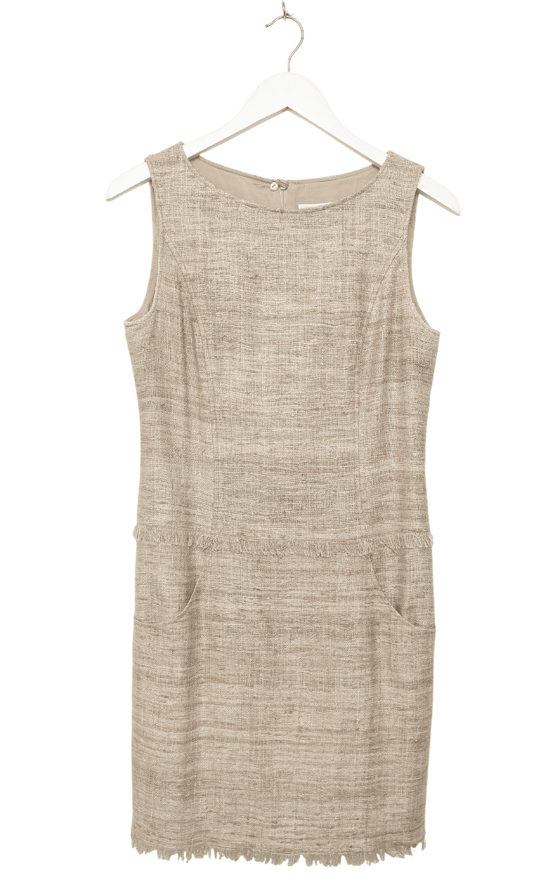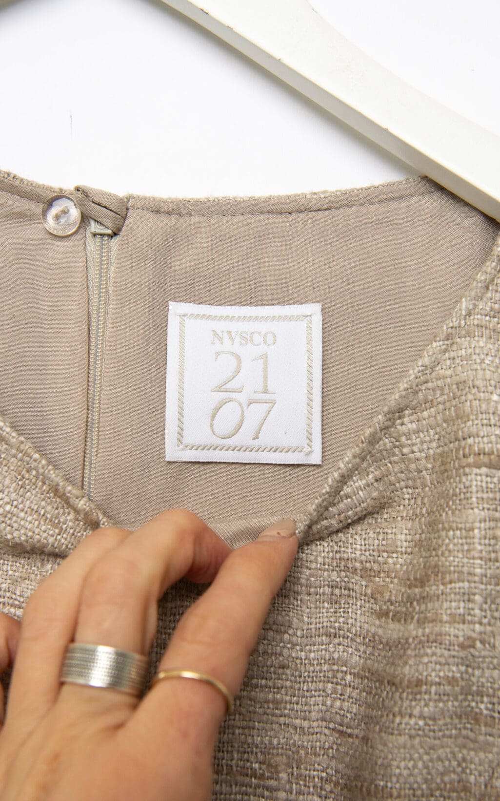 Das NVSCO 2107 Kleid in Beige aus Seide ist ein elegantes und luxuriöses Kleidungsstück, das durch seinen minimalistischen Stil und die edle Materialwahl besticht. Die beige Farbe verleiht dem Kleid eine zeitlose und vielseitige Ausstrahlung, während die seidene Textur für einen fließenden Fall und ein angenehmes Tragegefühl sorgt. Solche Kleider eignen sich hervorragend für formelle Anlässe oder besondere Events, da sie sowohl durch Schlichtheit als auch durch Qualität überzeugen. Die Seide verleiht dem Kleid einen leichten Glanz, der die Eleganz zusätzlich unterstreicht.