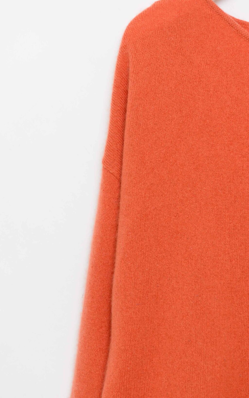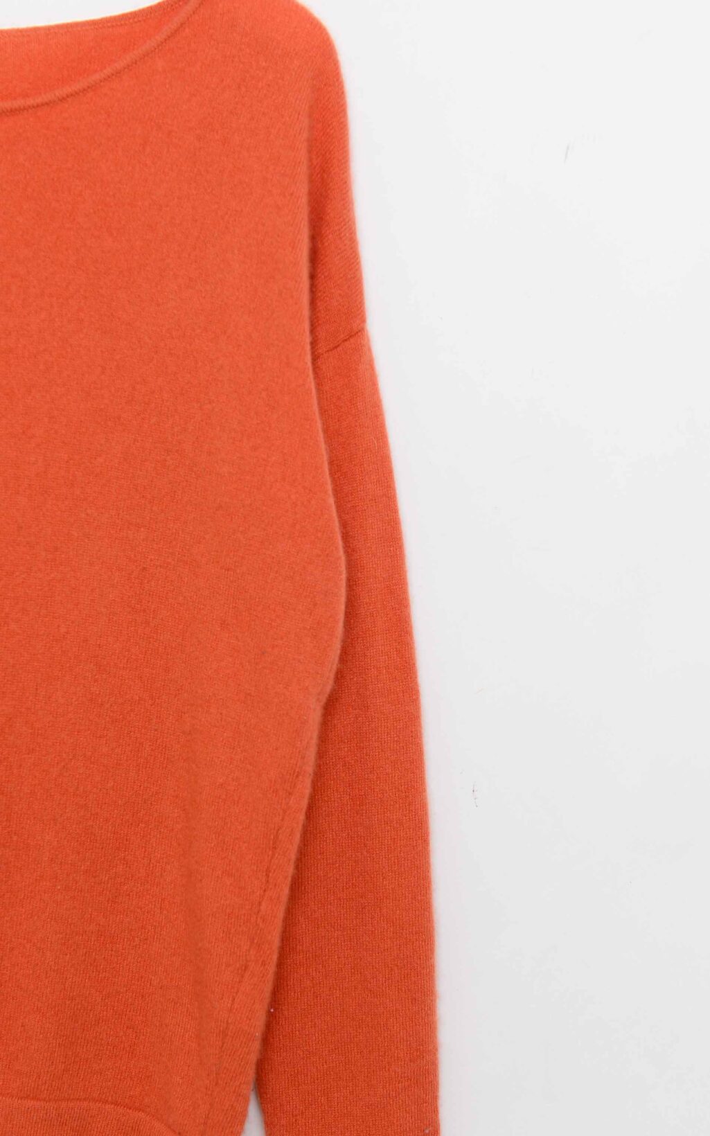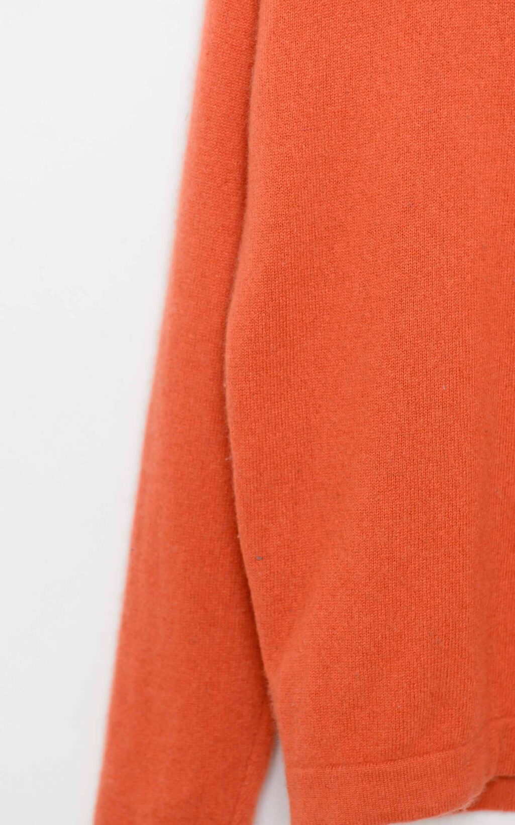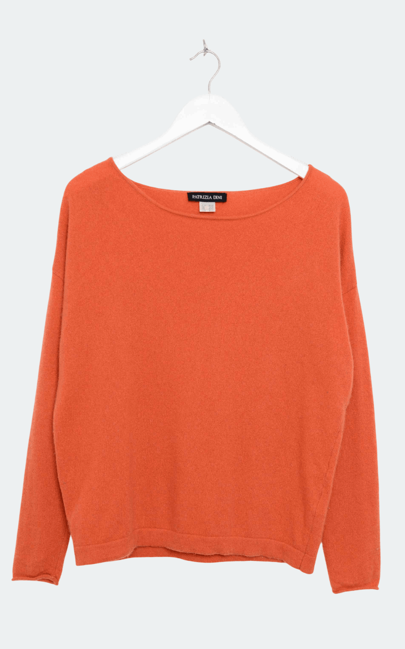 Strahlender Cashmere Pullover von Patrizia Dini in dezentem Orange. Weich, modern und lässig – ein farbenfrohes Statement-Piece, das jedem Outfit Energie und Stil verleiht.