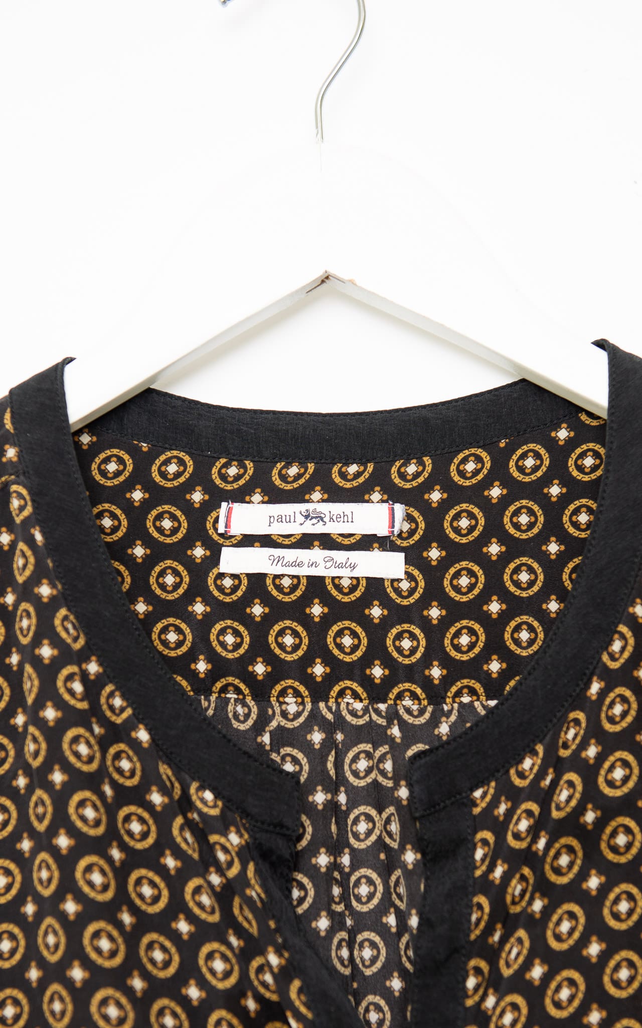 Entdecke die elegante Seidentunika von Paulkehl mit einem einzigartigen Muster und stilvollen Knöpfen – das perfekte Stück für einen mühelos schicken Look. Die hochwertige Seide sorgt für ein luxuriöses Tragegefühl und lässt die Tunika sanft fließen. Ideal für verschiedene Anlässe, kannst du sie sowohl zu Jeans für einen lässigen Look als auch zu einer schicken Hose kombinieren. Hol dir jetzt diese exquisite Tunika und bringe frischen Schwung in deine Garderobe!