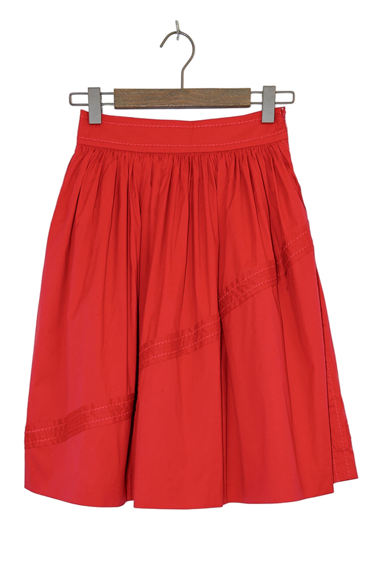 Der Prada Rock in XS in Rot mit A-Linien-Schnitt und besticktem Motiv ist ein elegantes und zugleich verspieltes Kleidungsstück. Das hochwertige Material sorgt für angenehmen Tragekomfort, während die A-Linie eine schmeichelhafte Silhouette zaubert. Die filigrane Stickerei fügt einen kunstvollen Akzent hinzu, der das Design einzigartig macht – ideal für besondere Anlässe oder stilvolle Alltagslooks.
