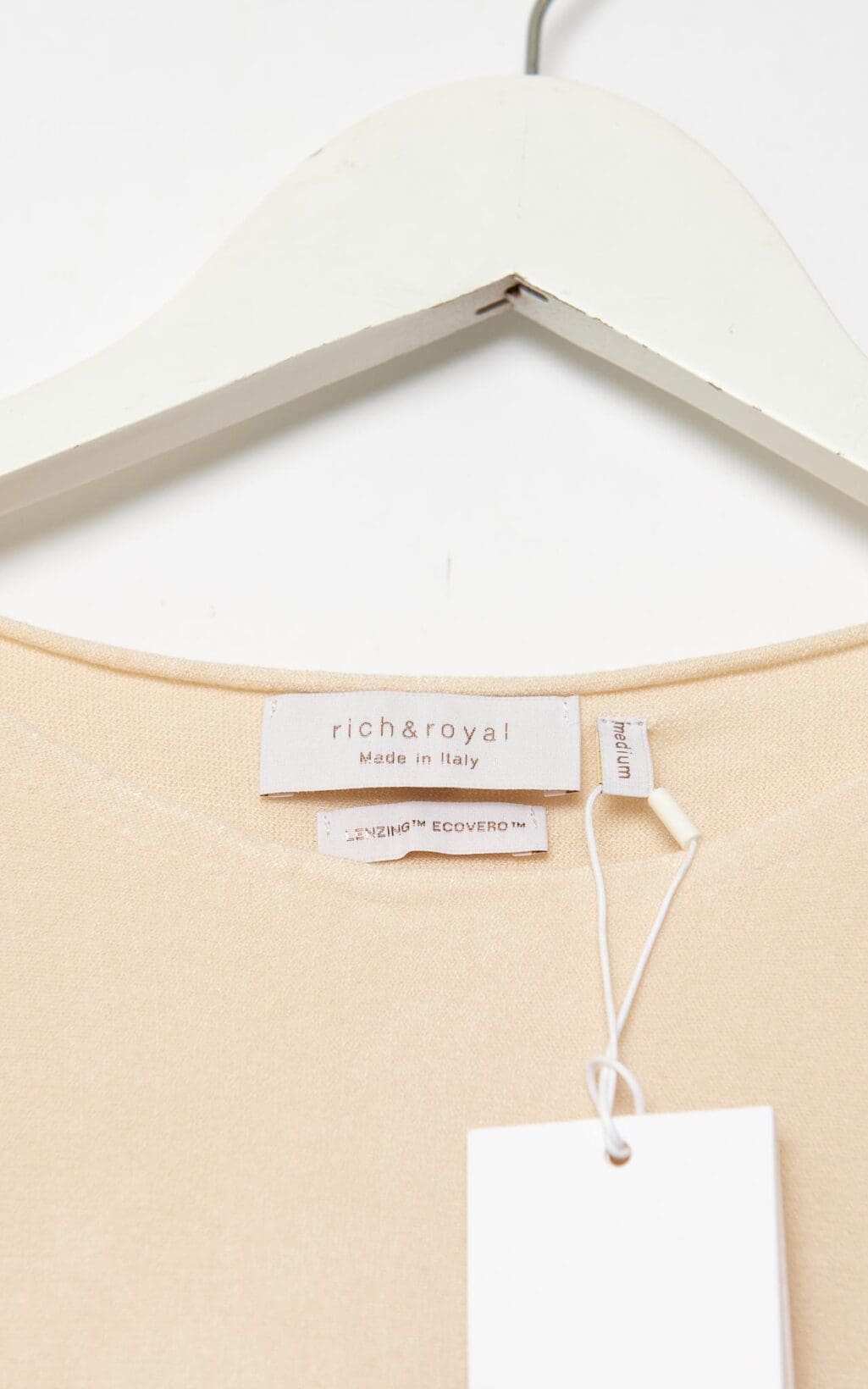 Das Rich&Royal Boat Neck Top mit nahtlosem Design und Ecovero-Material, Farbe: Caffee Latte, bietet eine elegante, nachhaltige Option für stilbewusste Frauen. Der klassische Boot-Ausschnitt und der weiche, umweltfreundliche Stoff sorgen für Komfort und einen modernen Look. Perfekt für vielseitige Outfits, die sowohl im Alltag als auch zu besonderen Anlässen glänzen.