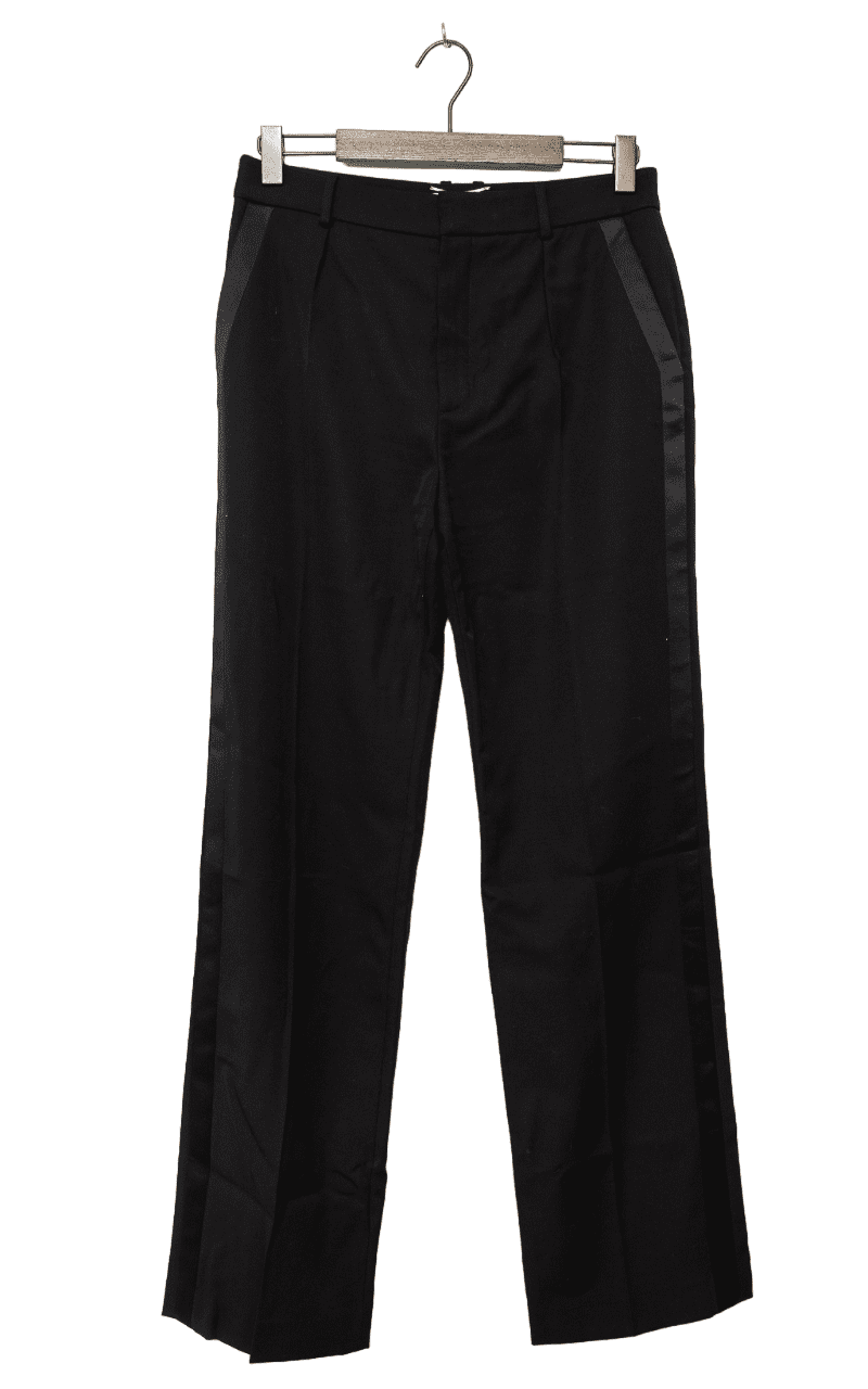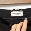 Erlebe puren Luxus mit dieser neuwertigen Saint Laurent Hose in klassischem Schwarz, veredelt durch dezente Samtstreifen als stilvollem Kontrast. Diese Designer-Hose kombiniert zeitlose Eleganz mit einem modernen Touch, was sie zu einem echten Statement-Piece in jeder Garderobe macht.