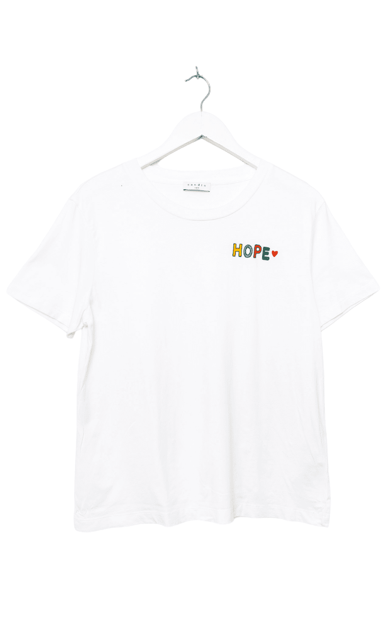 Cooles weisses T-Shirt von Sandro Paris in Weiss aus Baumwolle mit HOPE Print.