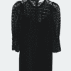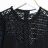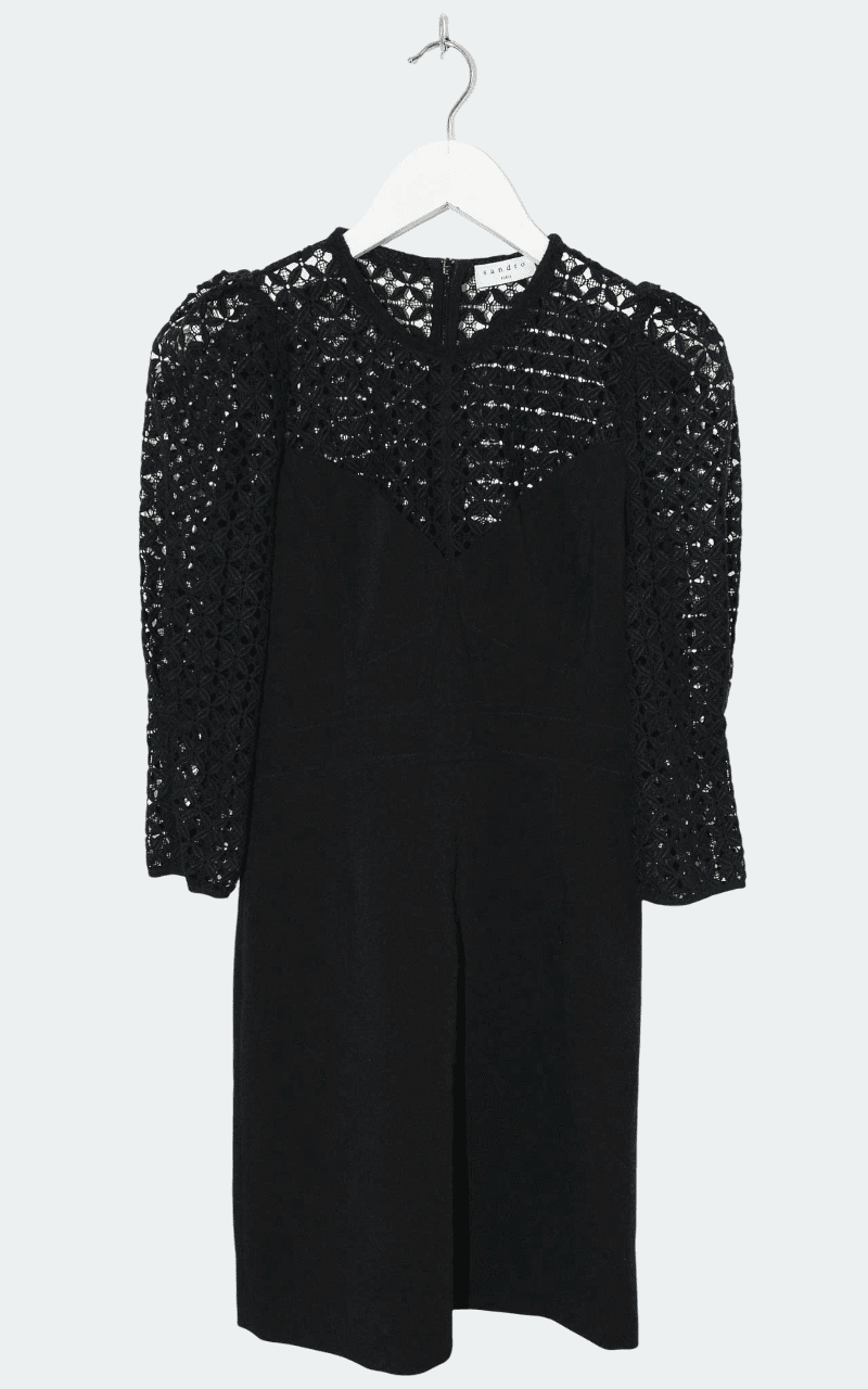 Sandro Paris Emilia Lace Kleid in Schwarz mit 3/4-Ärmeln. Broderie-Details an Brust und Ärmeln. Secondhand-Designer-Kleid.