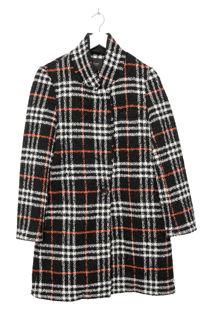Der Scotch & Soda Mantel in kariertem Design kombiniert stilvolle Muster mit der Wärme von Wolle. Ideal für kalte Tage, bietet dieser Mantel sowohl Komfort als auch einen klassischen, modischen Look.