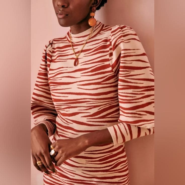 Der Sézane „Denver“ Pullover besticht durch sein auffälliges Zebramuster, das jedem Outfit eine trendige und zugleich elegante Note verleiht. Der weiche Strick und die hochwertige Verarbeitung garantieren einen angenehmen Tragekomfort und machen diesen Pullover zu einem absoluten Must-have für jede modebewusste Garderobe.