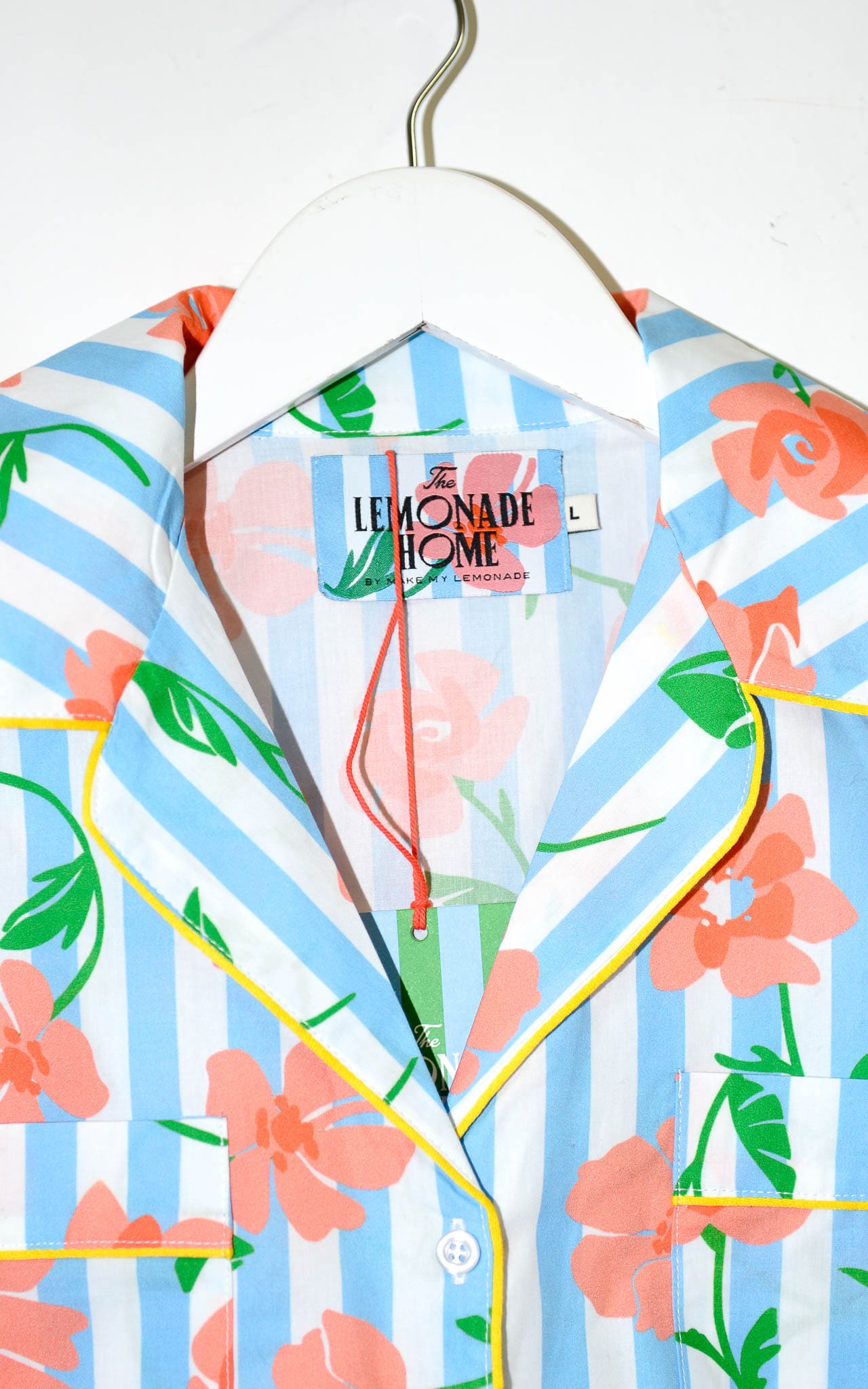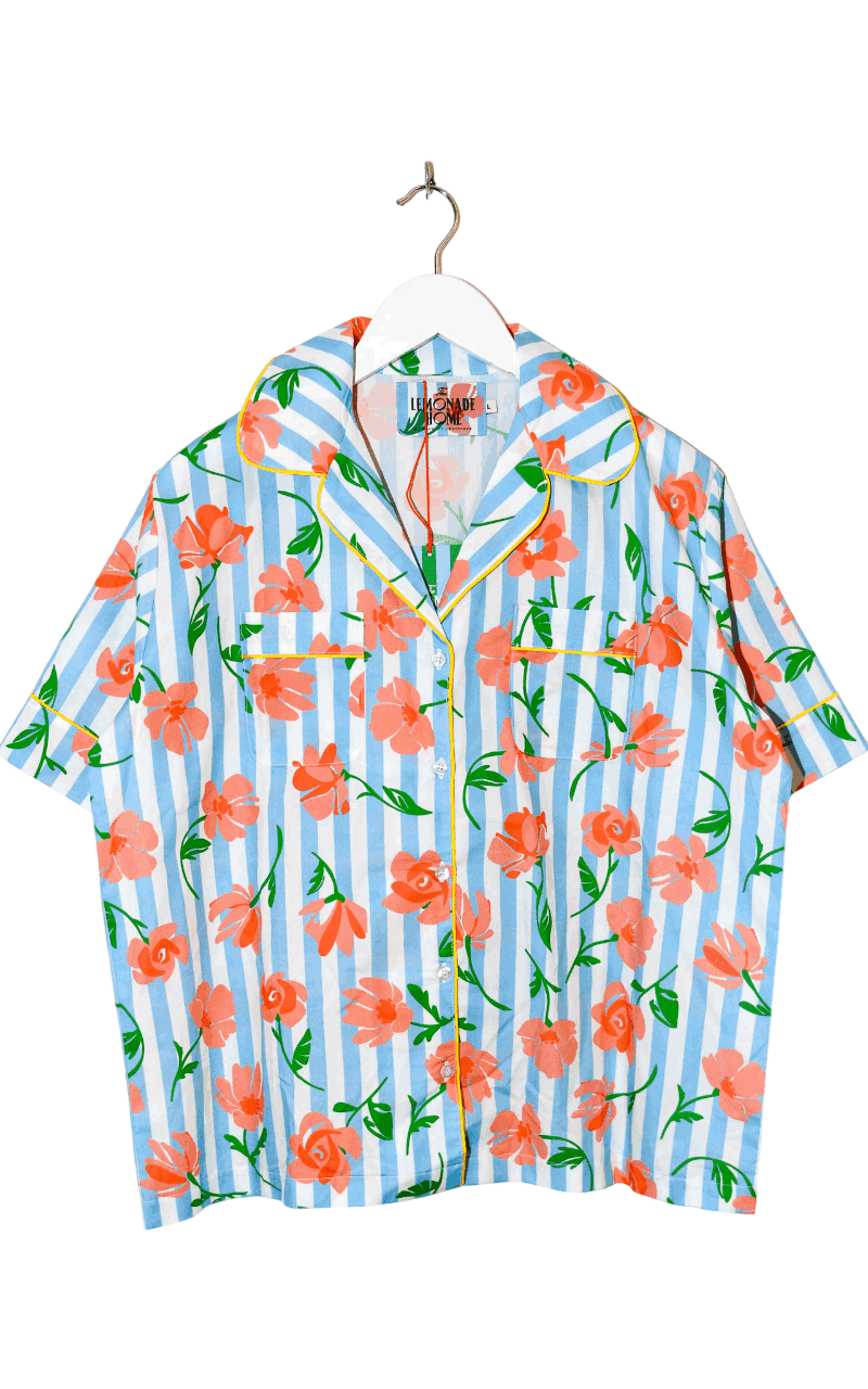 The Lemonade Home Romeo Bluse mit kurzen Ärmeln, floralen Mustern und Streifen. Ein komfortables und stilvolles Oberteil für entspannte Nächte, aus weichem Material.