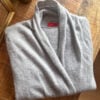 Grauer Cashmere-Cardigan von Tissaia aus 100 % feinstem Cashmere. Das moderne, urbane Design macht dieses Modell zu einem vielseitigen Begleiter für stilbewusste Alltagslooks. Sehr flauschig.