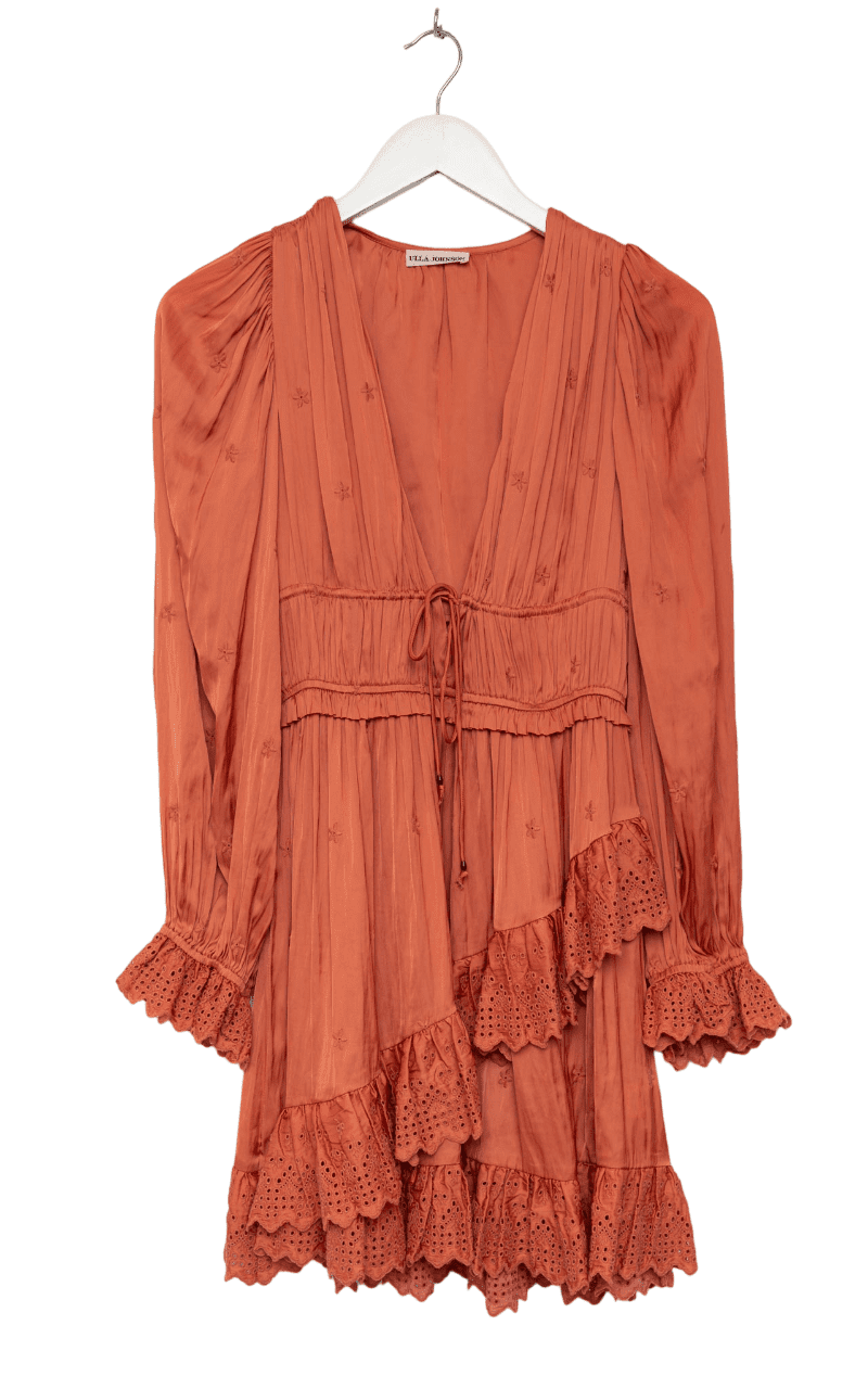 Das Ulla Johnson Kleid mit Volants besticht durch seine romantische und feminine Silhouette. Die kunstvoll gearbeiteten Volants verleihen dem Kleid Leichtigkeit und Bewegung, während der raffinierte Schnitt eine schmeichelhafte Passform bietet. Ideal für besondere Anlässe, setzt dieses Kleid stilvolle Akzente und sorgt für einen eleganten Auftritt.