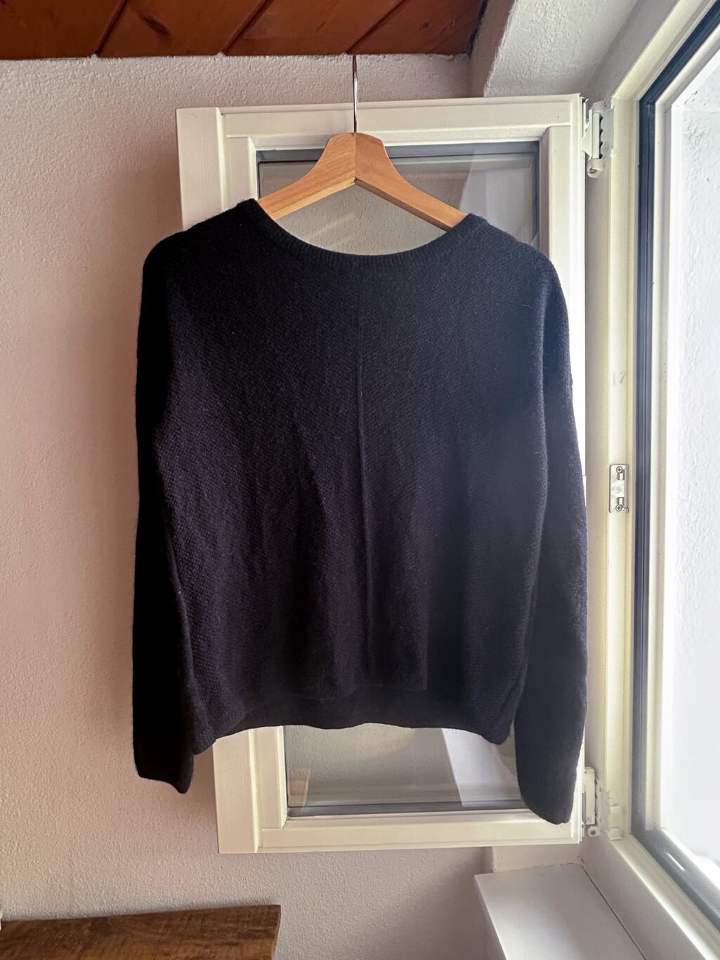 Wunderschöner zeitloser schwarzer Cashmere Pullover von Up2Fashion mit Mittelnaht und schöner Struktur in sehr gutem Zustand.
